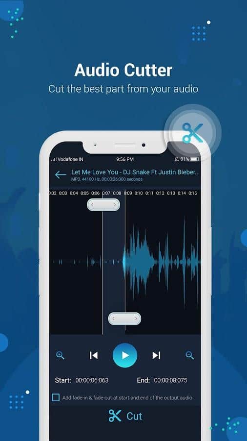 Audio Editor: Cut, Join, Mix, Convert, Speed - Для качественной работы с аудиофайлами могут пригодиться многие возможности для редактирования: обрезка, вырезка, смешивание, изменение скорости, добавление дополнительных звуков, конвертация файлов и прочее. Вы можете с легкостью выбрать доступные песни из каталога и настроить их под собственные нужды, тем самым в дальнейшем использовать как мелодию будильника, уведомления, входящего звонка или просто как песню для прослушивания. Весь процесс будет удобным, быстрым и самое главное — качественным.