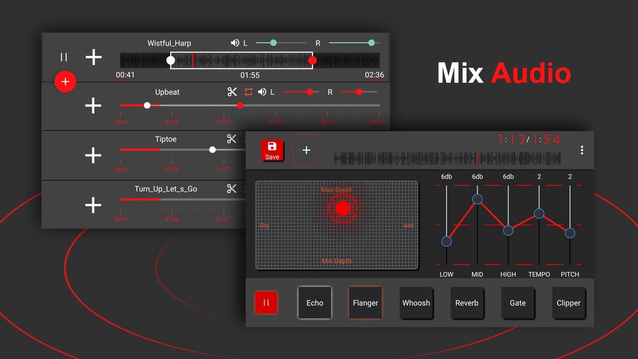 С помощью приложения AudioLab Pro вы легко сможете обрезать, смешать, конвертировать, разделять, добавлять эффекты, текст в музыкальный файл.