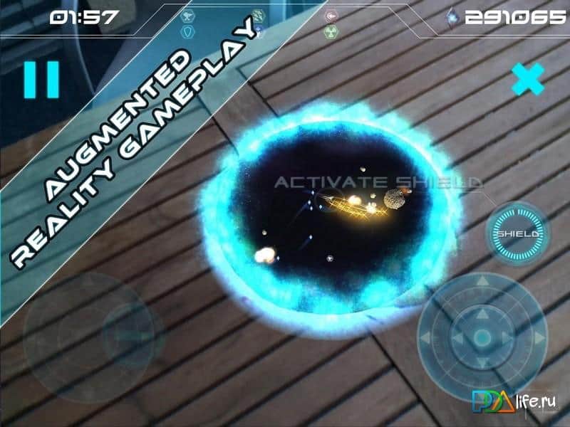 Augmented Reality Asteroids - научно-фантастический шутер на андроид, от разработчиков Mabulous Software & Graphics GmbH. Игра с помощью которой вы сможете побывать в космосе и открыть для себя все его глубины. В игре хорошая 3D графика с яркими световыми спецэффектами, легкое управление где вы сможете проверить свою реакцию. С помощью мощного оружия отстреливайтесь от врагов окружающих вас со всех сторон, и модернизируйте свой корабль после каждого сражения, улучшая его показатели. Игра порадует вас несколькими режимами, а также классическим с расширенными функциями.