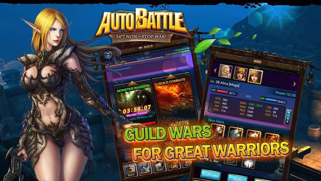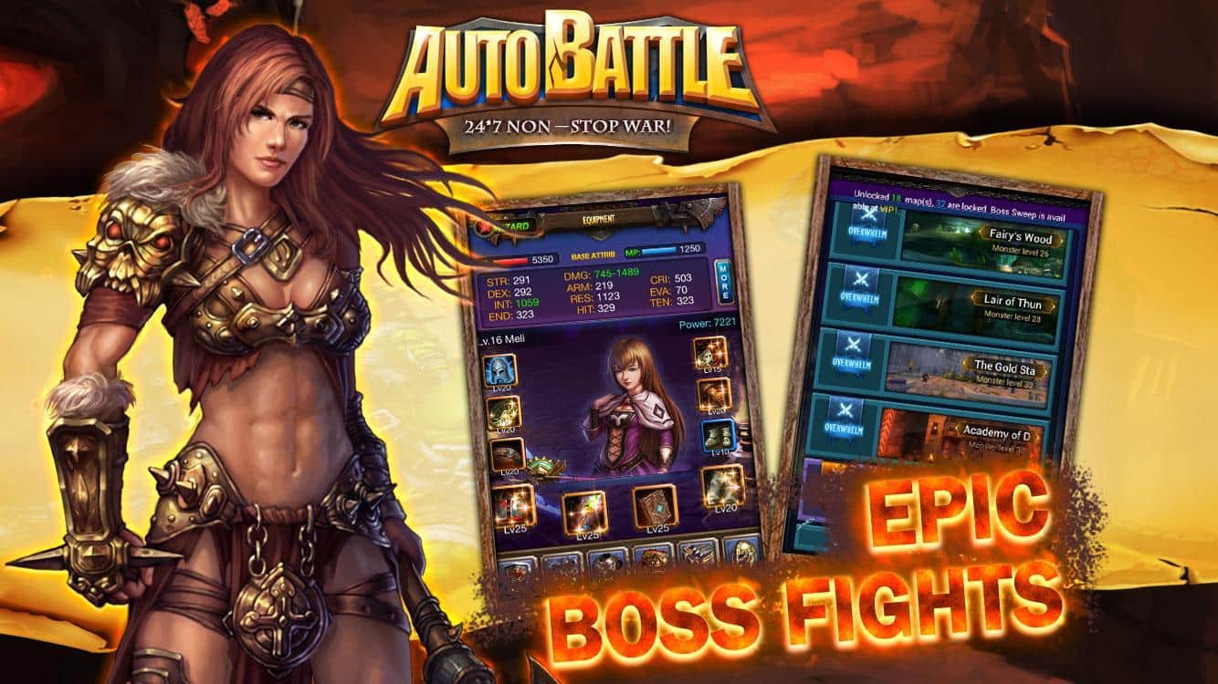 Auto Battle – захватывающие бои с бесконечными монстрами в темных подземельях. Эта лучшая игра жанра MMORPG в которой вы сможете выступать на арене сражаясь с ужасными монстрами и врагами. Выбирайте себе подходящего воина из трех классов – воин, маг или охотник и тренируйте свои способности и умения, в командных сражениях получая за выигрыш ценные награды и отличную репутацию. Применяйте свою стратегию для того чтобы уничтожить боссов и стать лидером. В отличие от игр такого жанра вы сможете продолжать сражения в автономном режиме, исследуя таинственные подземелья ищи там оружие и доспехи, обучаться азам ведения боя и улучшать вашего героя.