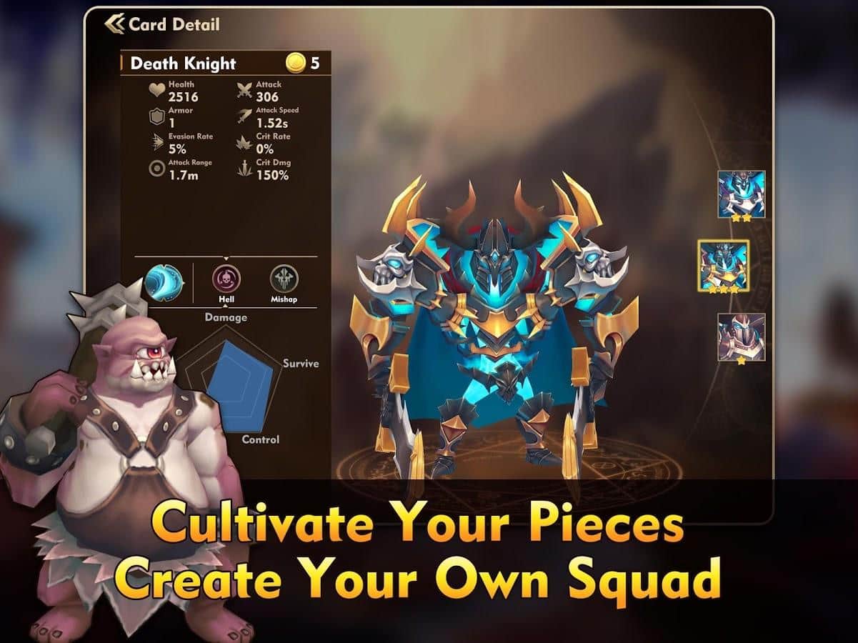 Auto Chess War – стратегическая PvE игра в жанре магического реализма на андроид, где столкнуться между собой человек, орк, эльф и звери. В этой игре вашей главной задачей будет собрать в свою коллекцию как можно больше воинов и победить врага. Разрабатывайте свою стратегию ведения боя развивая по ходу игры свои фигуры, применяя различные комбинации и получая боевые навыки. Каждый воин в игре будет обладать уникальными навыками грамотно, применяя которые вы проложите себе путь к победе. Играйте в эту игру и получайте уникальный опыт с каждым новым прохождением.