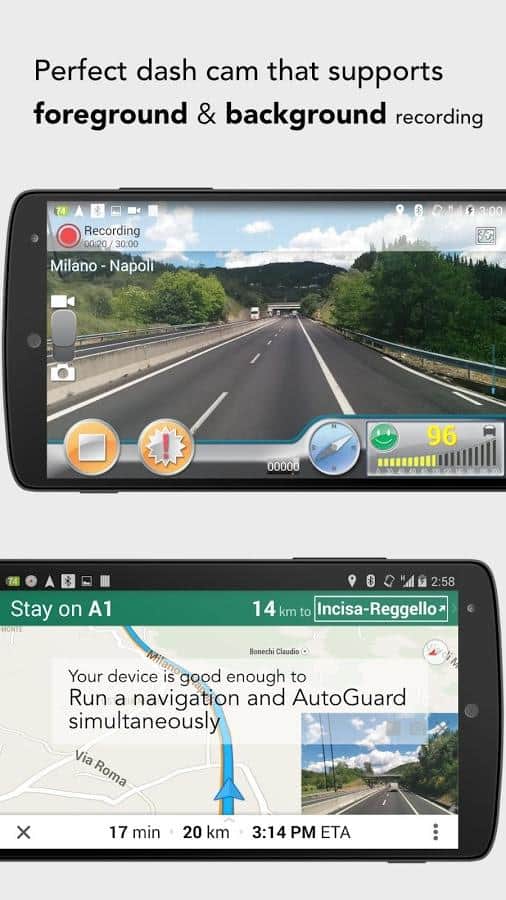 AutoGuard Dash Cam - Blackbox - Не хватает денег на навигатор? Не проблема, сделайте из своего смартфона настоящий навигатор. Даже более того, вы сможете сделать себе виртуального помощника. Здесь вы найдете все что вам нужно, тонкая настройка записи видео, начиная от времени и заканчивая размером записываемых файлов. Так же, здесь есть вспомогательные функции. К примеру быстрый набор номера, где вы сможете задать аварийный номер, будь то звонок близким или в службу спасения. Ещё на экране будет записываться скорость вашего передвижения. Так что вы всегда сможете узнать, как быстро передвигались.