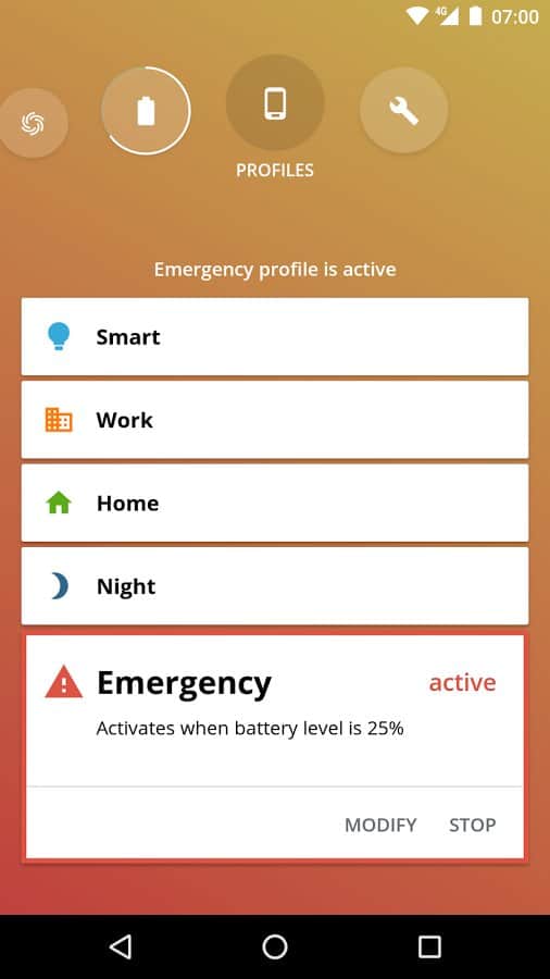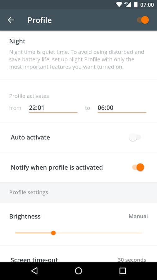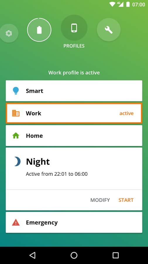 Профили активируются автоматически в зависимости от вашего местонахождения, времени суток и уровня заряда батареи