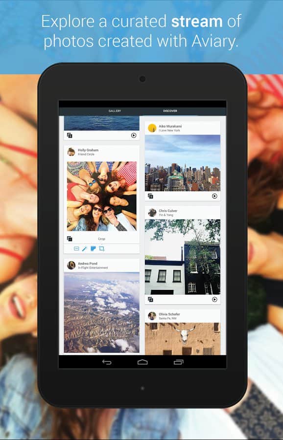 Aviary Photo Editor – это замечательный фоторедактор Aviary для устройств на базе Android. В список операций, которые редактор позволяет выполнять с изображениями, входят регулировка яркости и контраста, вращение и обрезка, повышение резкости и «замыливание», удаление эффекта «красных глаз». Редактор Aviary, среди прочих, использует фотохостинг Flickr.