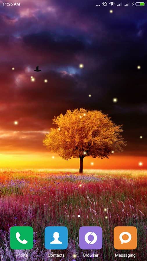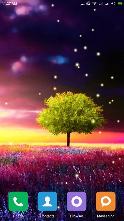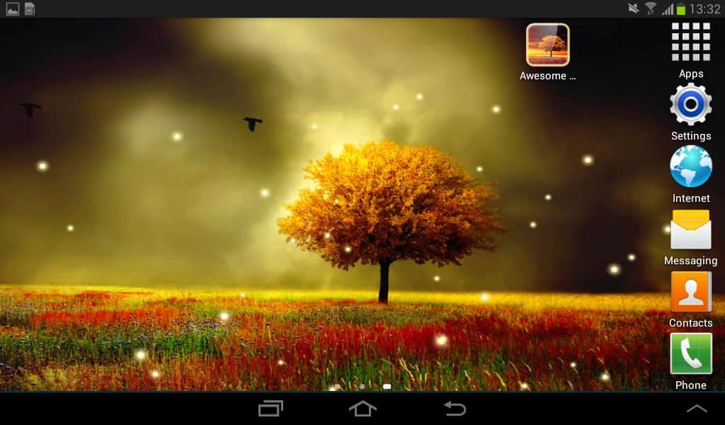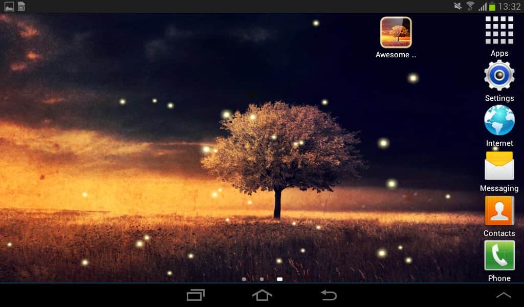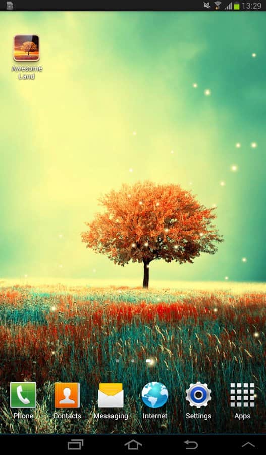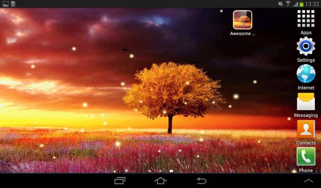 Awesome Land Live Wallpaper – безумно красивые живые обои от разработчика mrfarts для андроид устройств. Одинокое дерево среди яркого цветущего поля, маленькие светлячки мерцают в любое время суток - вся эта красота может быть на экране вашего смартфона. Все что нужно - это скачать данные обои по ссылке приведенной ниже.