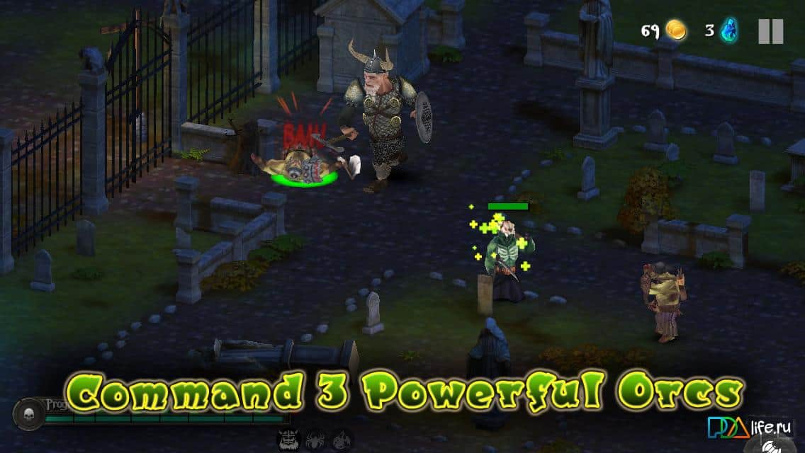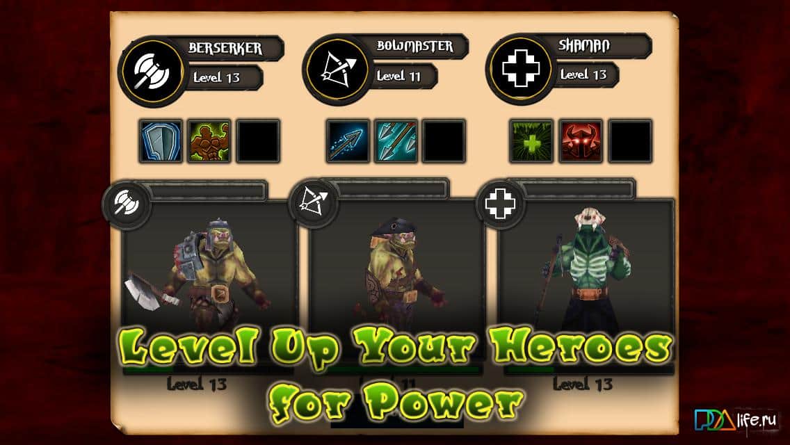 Axes & Allies - игра на андроид, в которой вы в будете командовать командой орков. Повышайте квалификацию своих воинов для более лучших сражений. Вам Доступно 3 класса: