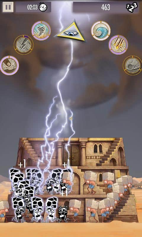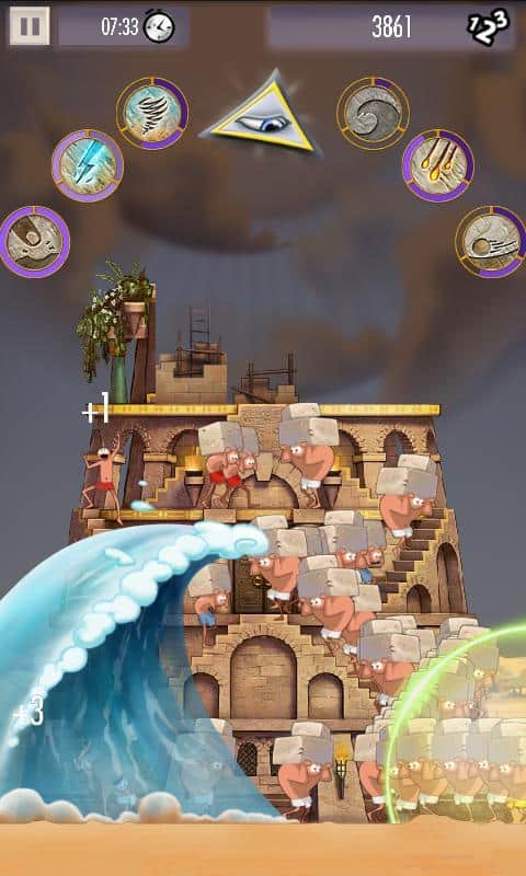 Babel Rising Cataclysm - это у увлекательная аркада, в которой вы выступаете в роли Бога. Люди пытаются построить башню до небес, но богу это не нравится и он всячески пытается помешать строительству. Пускайте в людей молнии, разрушайте башню, устраивайте потопы и поджоги, вообщем всячески мешайте строительству. Игра поддерживает мультитач для более быстрого истребления людей. Управляйте своими способностями, усовершенствуйте их,используйте в нужное время, и не дайте людям постоить последний ярус башни.