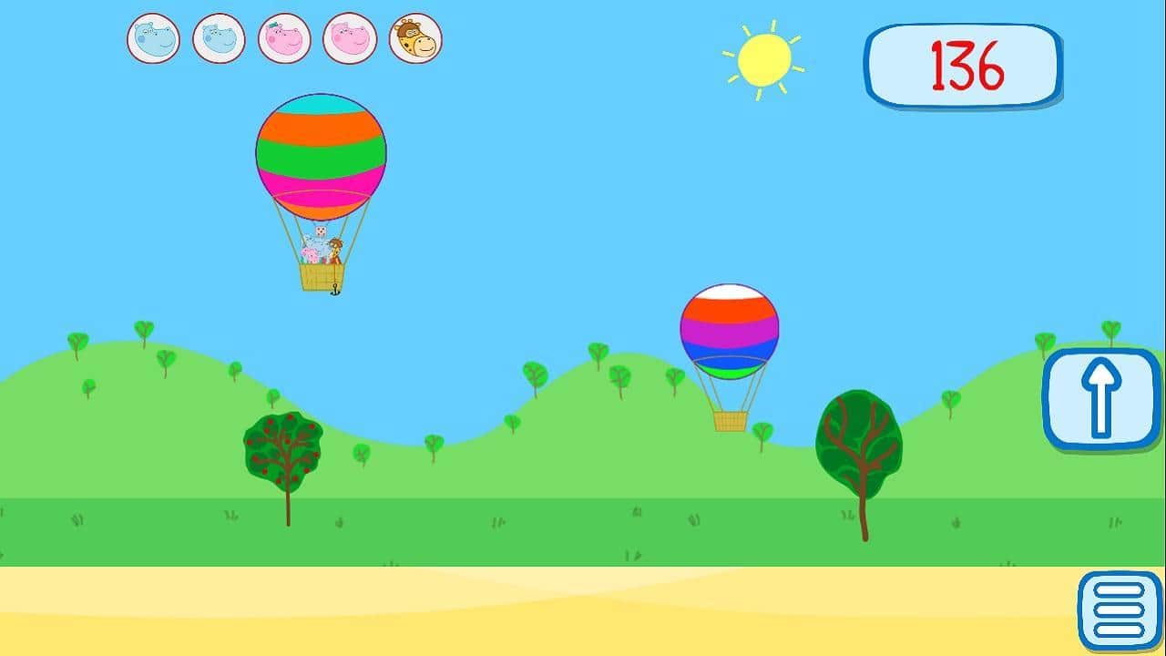 Baby Balloon Journey – увлекательная игра для детей дошкольного возраста где они будут помогать Гиппо Пепе и ее семье летать на воздушном шаре. Погода выдалась отменная для полетов на шаре, и вся семья отправилась в полет. Управляйте полетом воздушного шара так чтобы обойти все препятствия в виде грозных туч, других шаров, птиц и дирижаблей. Нажимайте на специальные стрелки на экране и опускайте или поднимайте шар высоко в небо. Игра порадует детей простым и веселым управлением, забавными героями и многочисленными локациями. Проведите героев по всем уровням и скоротайте весело время со своим ребенком.