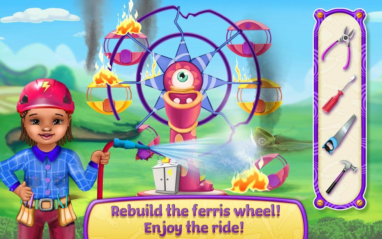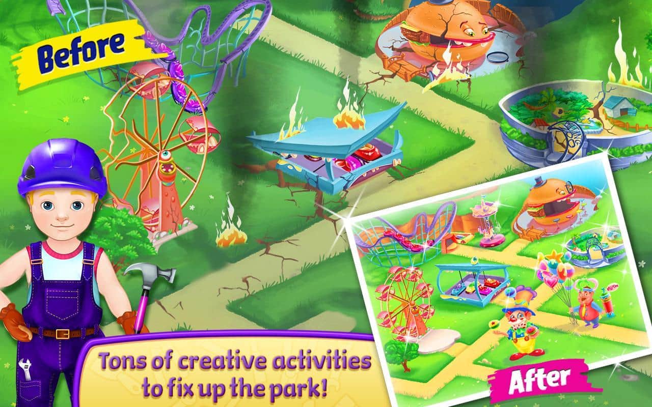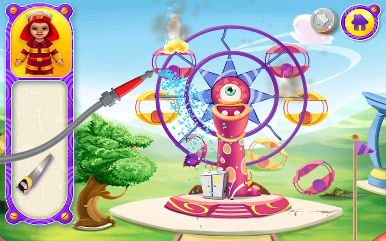 Baby Heroes: Amusement Park / Малыши-герои: парк развлечений - Малыши - герои снова с нами! Но у них особое задание - спасти парк развлечений после того, как он был разрушен страшным землетрясением. Помогите этим малышам, которые обладают 6 разных профессий: пожарного, строителя, садовника, электрика, слесаря и уборщика. Отстраивайте американские горки, чините колесо обозрения и электромобили и многое другое. Откройте ларек по продаже сладкой ваты и хот - догов, верните животных в детский зоопарк и помогите в бюро находок. Сделайте всё, чтобы спасти парк развлечений! Также попробуйте различные мини - игры. Соберите монеты в приложении и заработайте классные призы в магазине подарков. Верните веселье всем детям!
