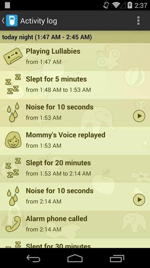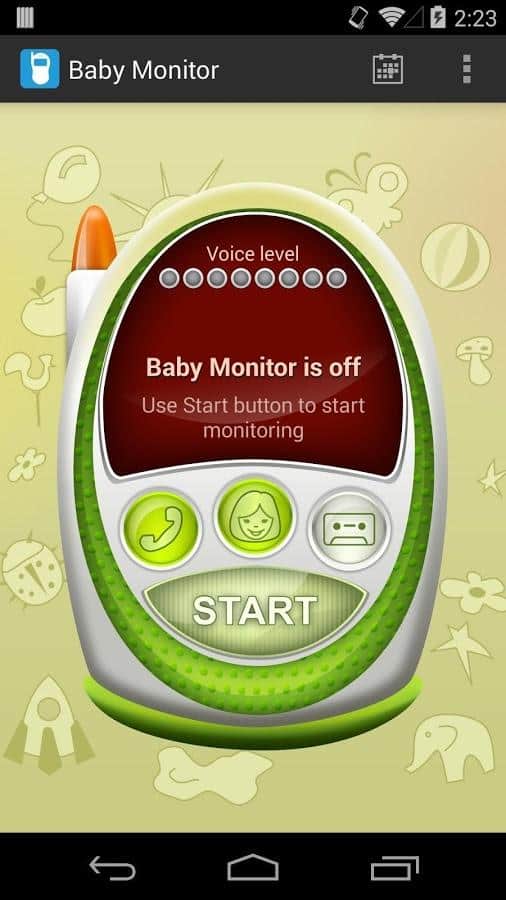 Когда в вашем доме появляется маленький ребенок, то даже находясь в соседней с ним комнате, вы все равно будете волноваться не случилось ли с ним чего-то плохого. Приложение Baby Monitor & Alarm позволит установить ненавязчивое круглосуточное наблюдение за малышом и будет присылать вам, родителям, своевременные оповещения о его действиях. Малыш проснулся голодным и заплакал? Вы мгновенно узнаете об этом и сразу же придете ребенку на помощь. Кроме того, посредством этой программы вы можете в любой момент включить для малыша его любимые мелодии-колыбельные или аудио-файлы с записью вашего собственного голоса, чтобы помочь ему быстрее заснуть.
