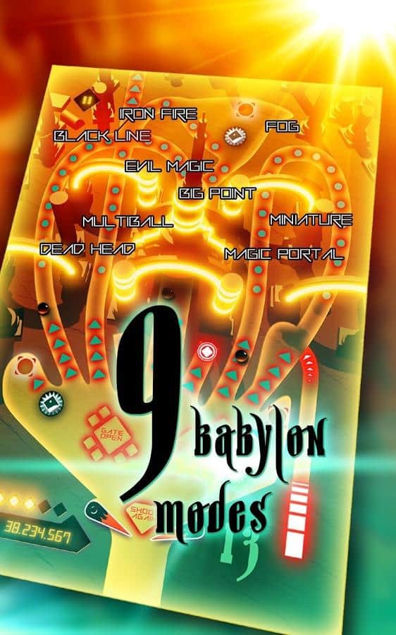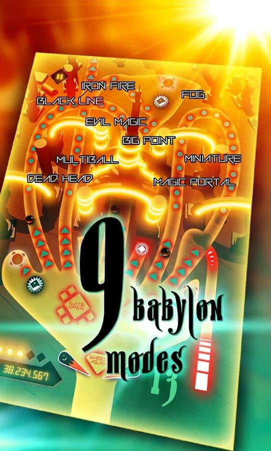 Babylon 2055 Pinball - пинбол на андроид, с красивой графикой и отличной физикой движения шарика. Если вы любите пинбол, то эта игра понравится вам, ведь в ней вы найдете большое множество различных режимов со специальными игровыми процессами такими как: больше очков, злая магия, туман, магия портала и многое другое. Также вас порадуют 7 разнообразных столов для игры, на ваш выбор и таблица лидеров, где вы сможете побороться с другими игроками.