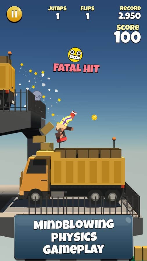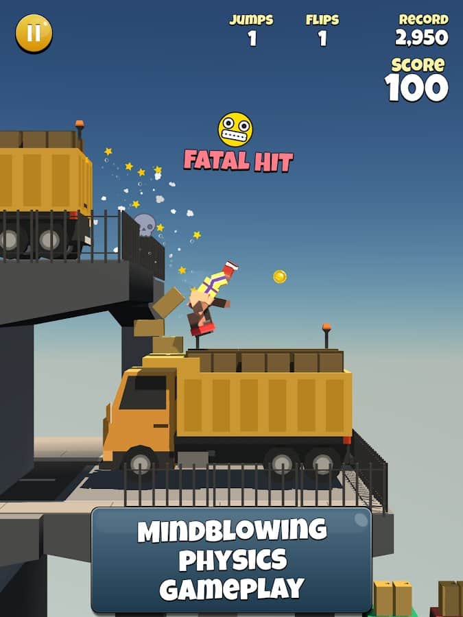 Backflipper – увлекательная игра на андроид, где вы будет осваивать навыки паркура. Возьмите под свой контроль героя и делайте сальто назад при этом приземляясь на ноги. Игра порадует игроков реалистичной физикой и анимацией. Выполняйте многочисленные прыжки и приземляйтесь на ящики, проезжающий мимо автомобиль, на движущийся лифт, деревья, грузовик и даже самолет. Набирайте достаточное количество очков и открывайте для себя новых персонажей таких как: спортсмен, ниндзя, панда, пингвин, президент и даже астронавт. Каждый персонаж обладает своими уникальными способностями.
