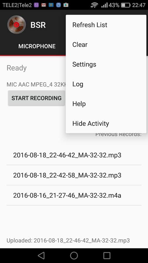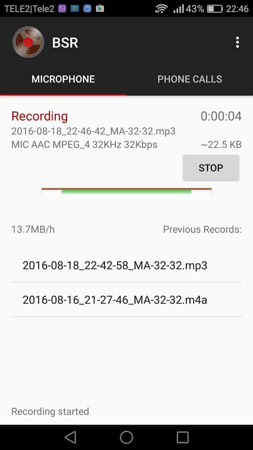 Background Sound Recorder - Это великолепное приложение, позволит вам обезопасить свою жизнь, и при необходимости записать телефонный разговор, или же в режиме диктофона. Широкий выбор оптимизированных настроек качества звука: от самых экономных до самых детальных. Оно даже может записывать звонки на Android 6.0, обходя стандартную блокировку. Простое и многофункциональное, имеет простой интерфейс и множество дополнительных опций.
