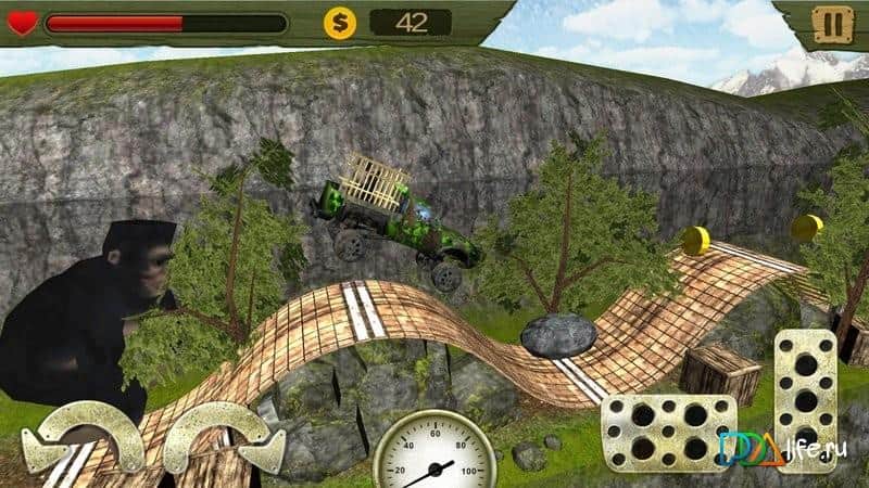 Bad Safari / Сафари Парк - Это новая гоночная игра, в которой ты сможешь проверить свои навыки вождения и покажешь, что самый аккуратный и умелый водитель - это ты. Ведь тебе придётся управлять машиной браконьеров, которые украли детеныша гориллы, а мамочка этого малыша имеет очень крутой характер. Поэтому ты будешь спасаться от неё! Тебе предстоит великолепная гонка на плохой дороге, в которой ты будешь взбираться на холмы не теряя баланса. Ведь если ты его потеряешь, то машина перевернётся, и мама- горилла тебя догонит. Но вести машину нужно не только быстро, но и осторожно, чтобы не навредить малышу. Взбирайся на холмы, собирай побольше очков и заверши все уровни. Тебя ждут множество увлекательных трасс с различными рельефами, реалистичная физика и высокое качество 3D графикой, симулятор вождения. Готовься к невероятным приключениям! Ведь Сафари парк открывает свои двери!
