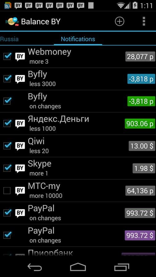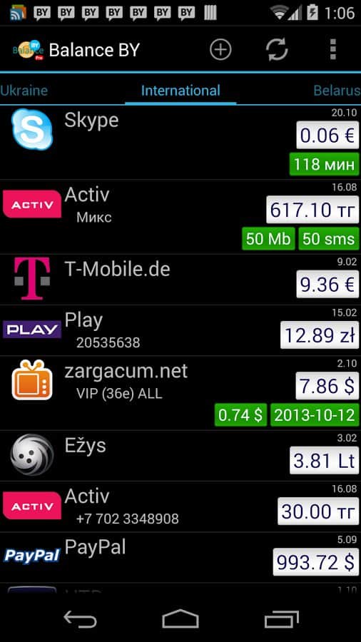 С помощью программы Balance BY вы сможете одновременно контролировать состояние нескольких телефонных номеров. Очень удобная штука для владельцев нескольких мобильных номеров. Приложение весьма просто и удобно, не имеет ограничений на количество аккаунтов, имеются виджеты, и кроме всего перечисленного есть разумный подход к расходу трафика и ресурса батареи.