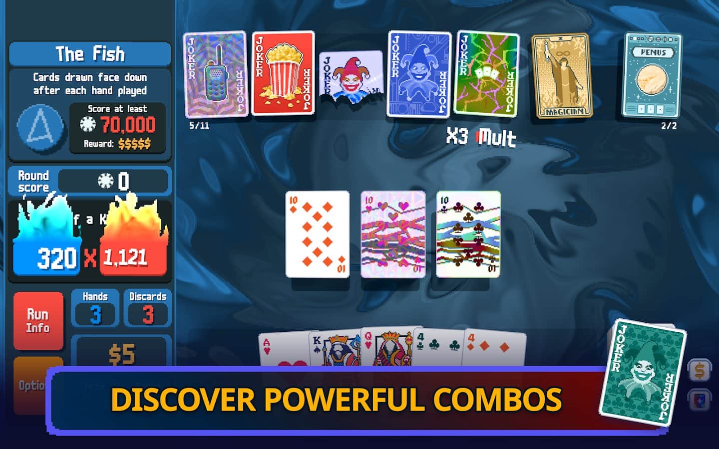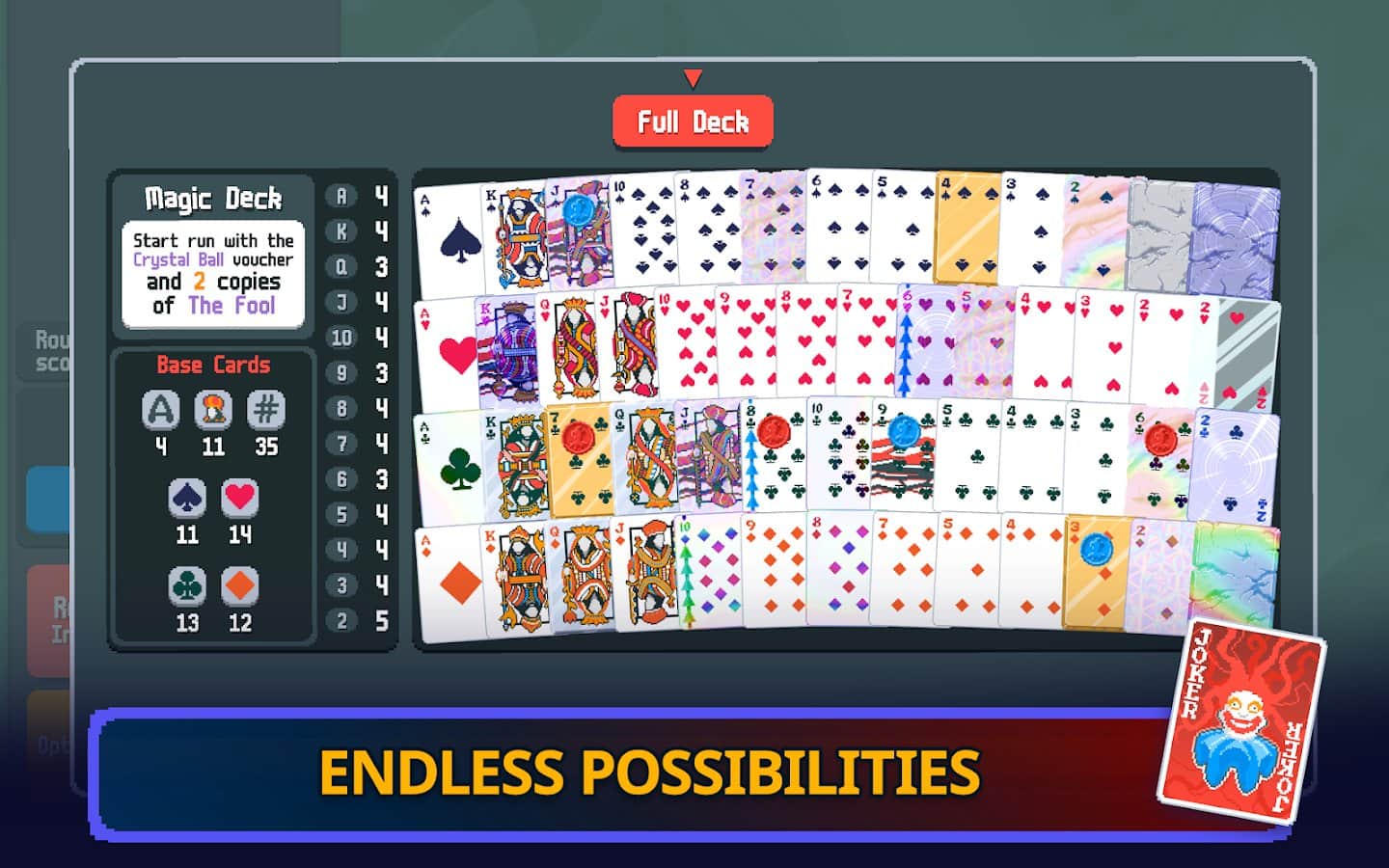 Добро пожаловать в официальную мобильную игру Balatro! Ваша миссия одолеть босса-блайнда, собирая мощные покерные комбинации. Открывайте новых джокеров, которые изменят ход игры, и создавайте впечатляющие комбо! Заработайте достаточно фишек, чтобы победить сильных боссов, и находите скрытые бонусные комбинации и колоды в процессе игры. Присоединяйтесь к игре Balatro и испробуйте всё богатство стратегий и удовольствия, которое она предлагает!