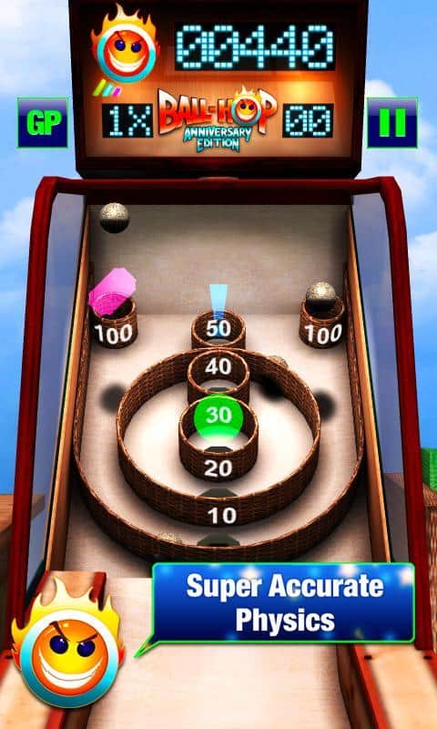 Ball-Hop Anniversary Edition - Самое время взяться за шары! Нет не в прямом конечно смысле, самое время скачать себе игру, где нужно брать шары, и бросать их с разной силой и направлением что бы зарабатывать очки, и получать бонусы. Это простая игра, которая является симулятором популярного игрового автомата, где вам нужно бросать шары. У вас есть ограниченное количество попыток, так что будьте внимательны. В целом в игре нет никакой конкретной цели, просто неплохая графика и возможность набрать много очков, тем самым побив рекорд своих друзей и знакомых.
