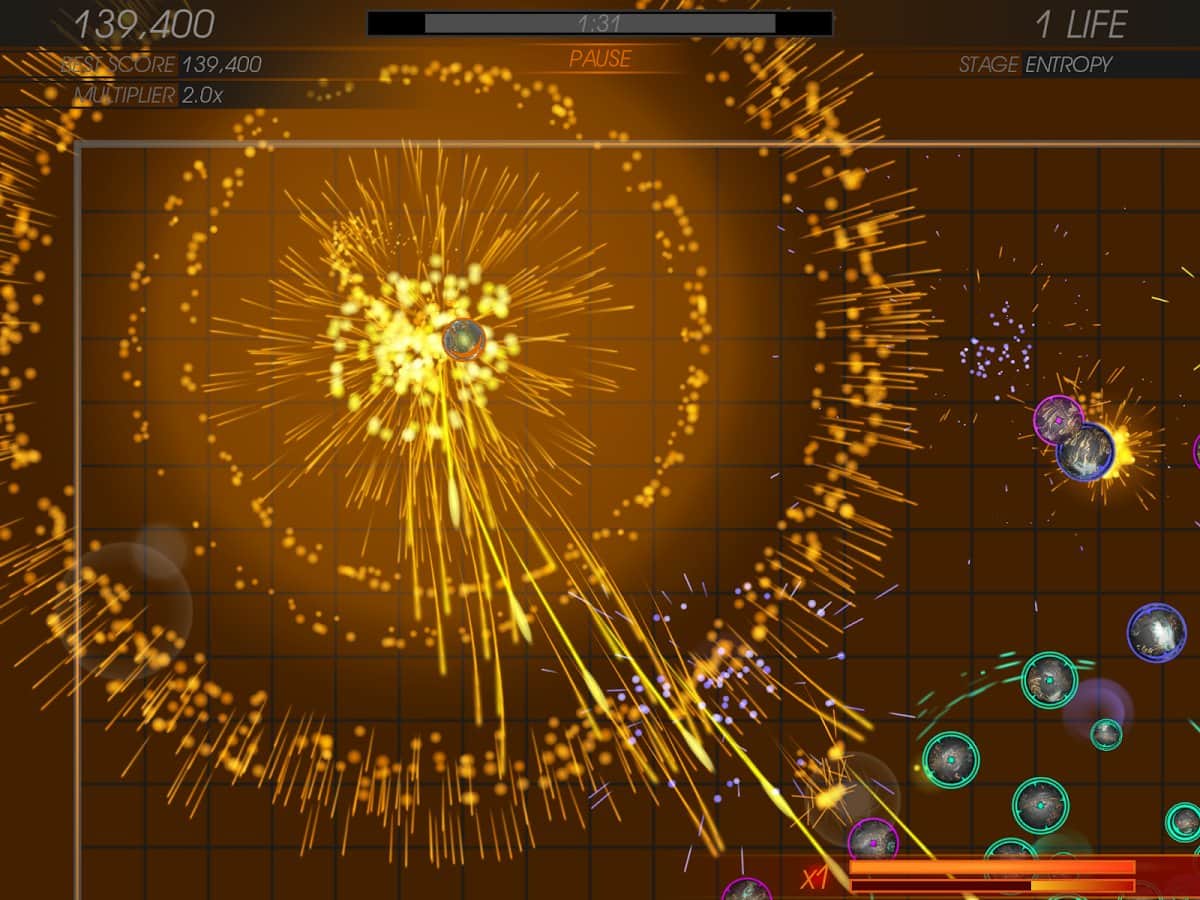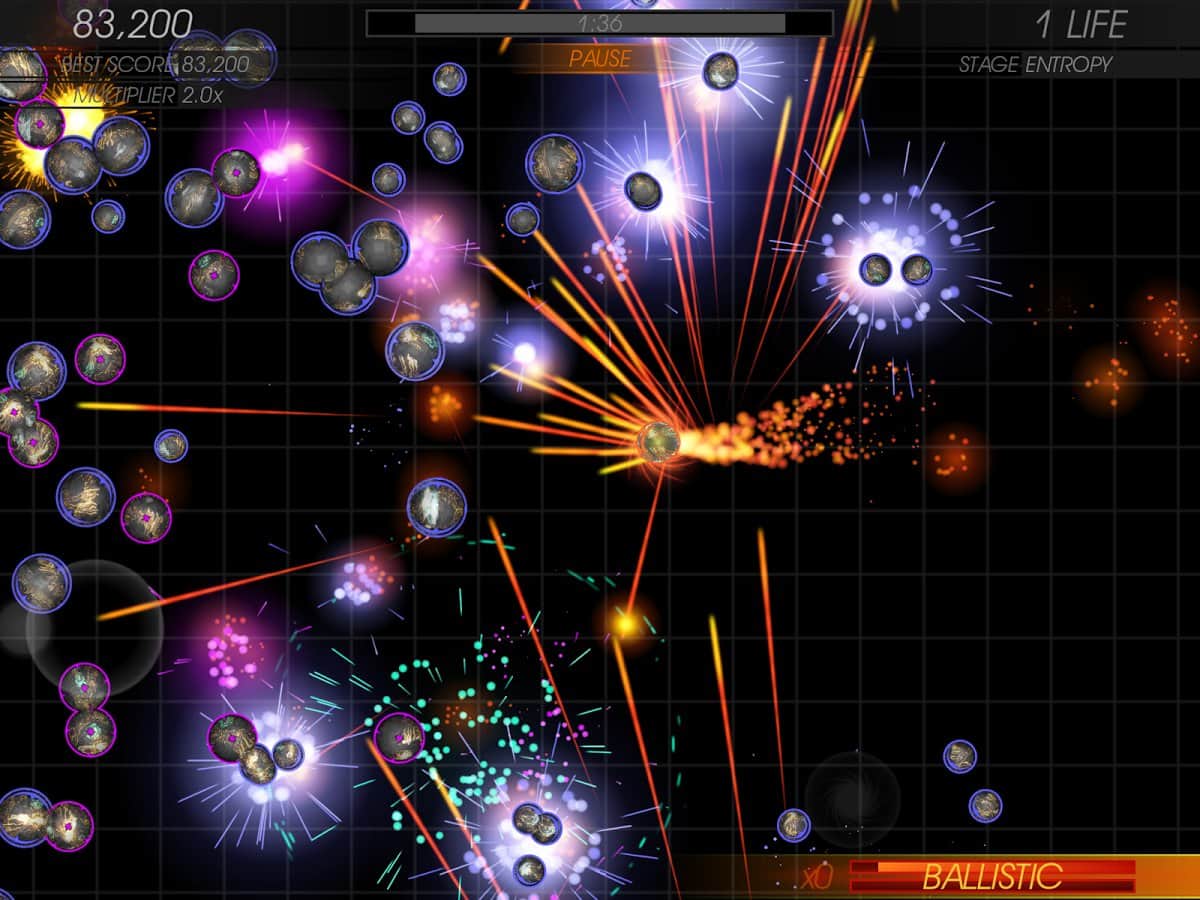 Ballistic SE. - одна из тех аркад что без сомнений можно отнести к просто идеальным тайм-киллерам. И сейчас вы поймете почему. Действия игры развиваются в далеком космосе, в мире населенном странными существами, умеющими изменять законы физики. Так уж случилось что эти существа на редкость воинственны и прибывают в состоянии постоянной войны. Вам же предстоит управляя одним из этих существ выжить в столь опасном мире. Игровой процесс довольно прост, управляя космическим объектом расстреливайте все что увидите на своем пути. В свою очередь игра разделена на несколько режимов, в каждом из которых можно заработать уникальные достижения и бонусы. Отдельно стоит отметить яркое, красочное графическое решение в неоновом стиле.