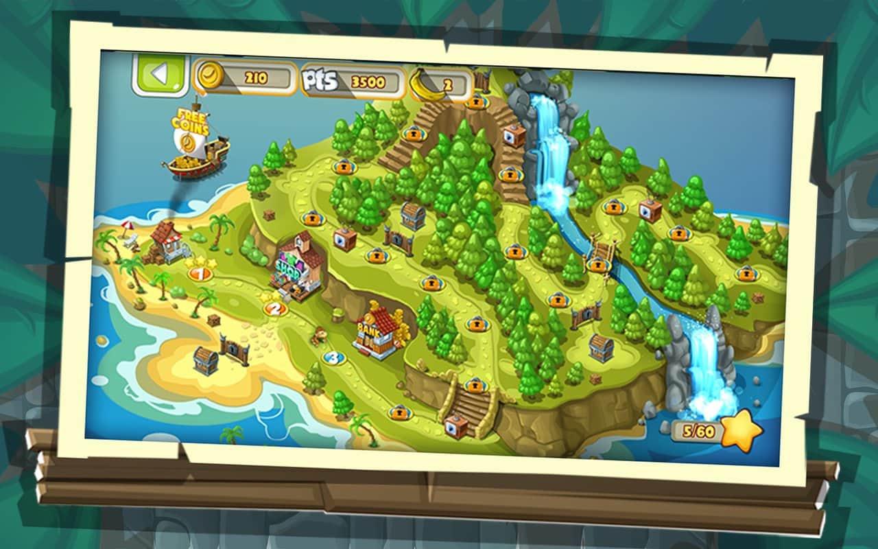 приключениям в джунглях на различных островах. Управляйте веселой обезьянкой по