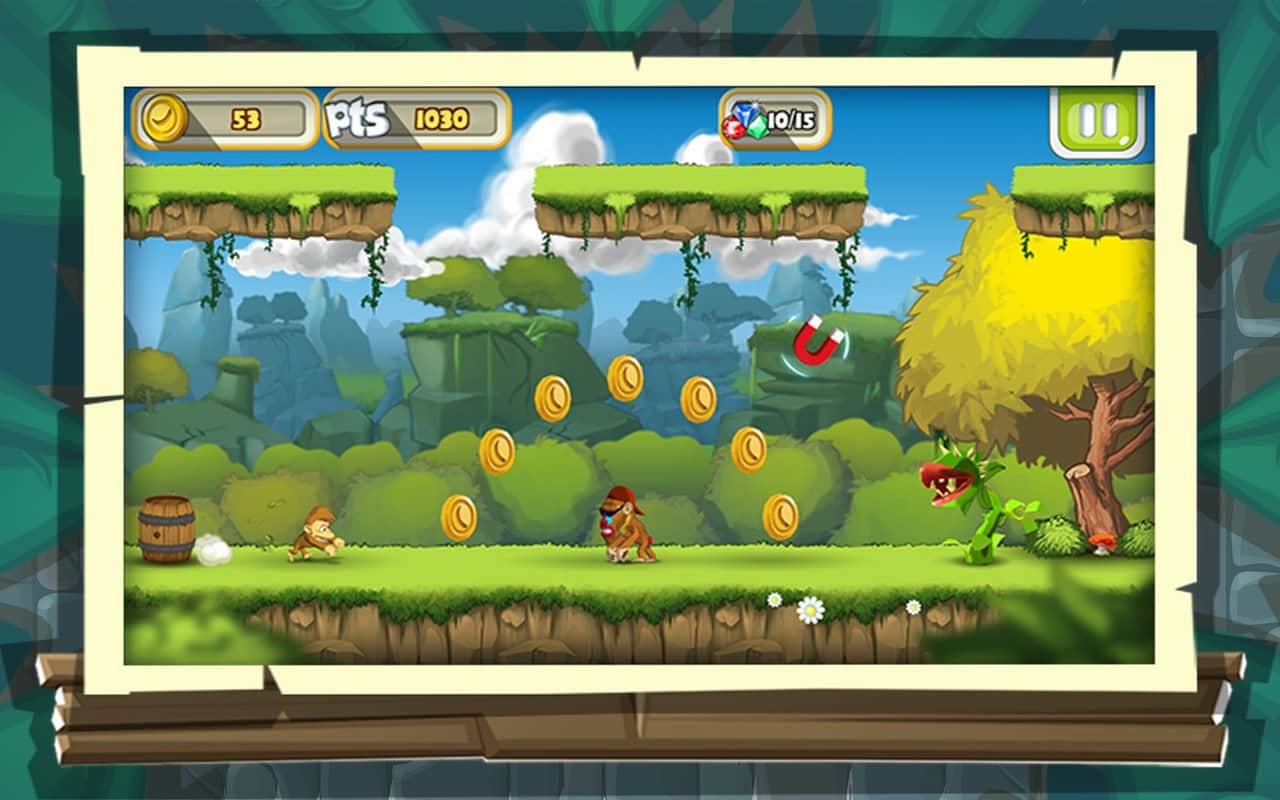 джунглей, и остров вулканов. По сути эта игра является раннером с видом сбоку.