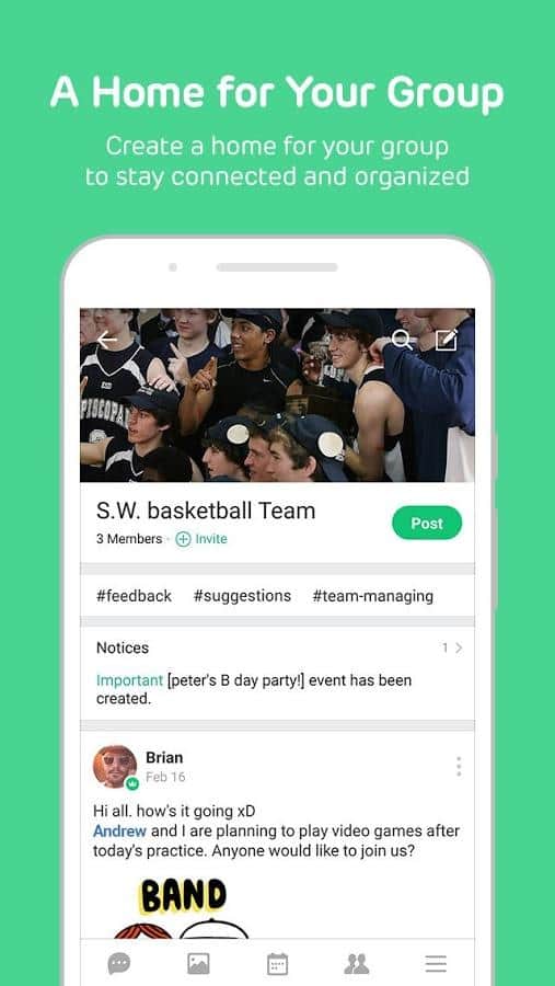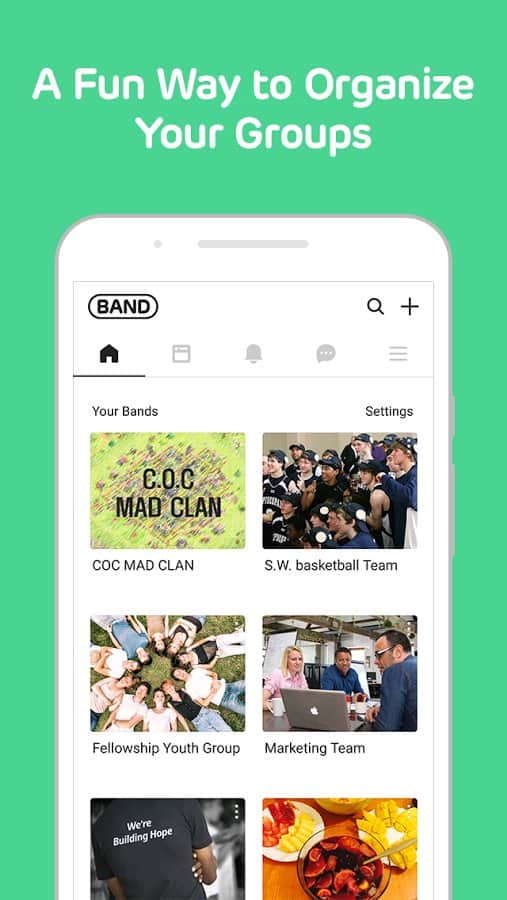 BAND - Уникальная социальная сеть, которая рассчитана именно на общение людей. Основной упор здесь сделан на поиск людей, по схожим интересам. Любите играть на гитаре? Пожалуйста, вот вам сотня сообществ таких же как и вы. Любите видео игры? Не проблема, выбирайте какую конкретно игру любите, и присоединяйтесь. Если говорить про игры, то вы даже сможете найти себе компаньонов, и дальше играть вместе.