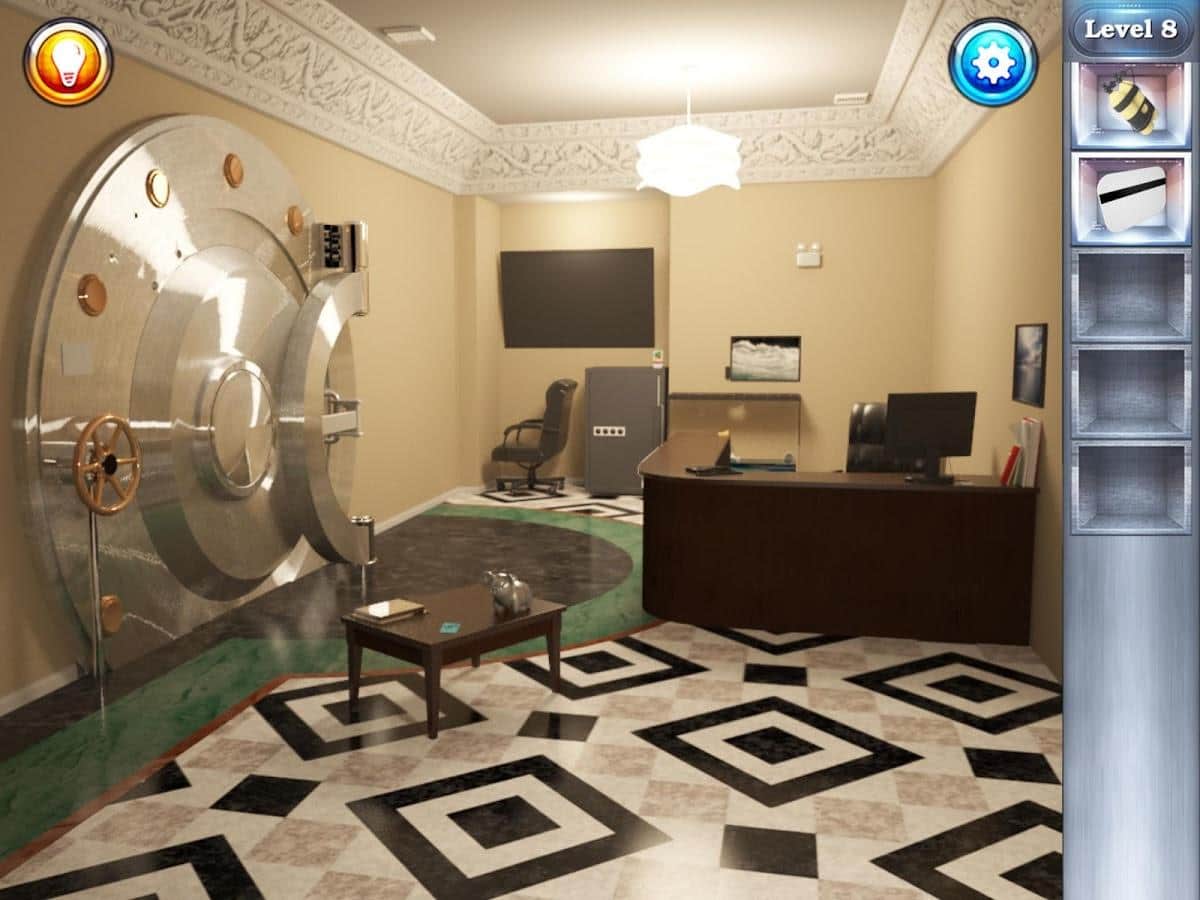 Bank Escape - Игра представляет, наверное мечту любого человека, каждый когда-то мечтал взломать банк, украсть королевские бриллианты, миллионы денег и сбежать не оставив и следа. Теперь у вас есть шанс проверить себя. В ходе игры вам придется решать многочисленное количество головоломок, найти скрытые предметы и использовать свою интуицию, что бы перейти в следующую комнату. Готовы ли вы принять вызов и стать богатым? Но помните, не повторяйте это в реальной жизни, это наказуемо!