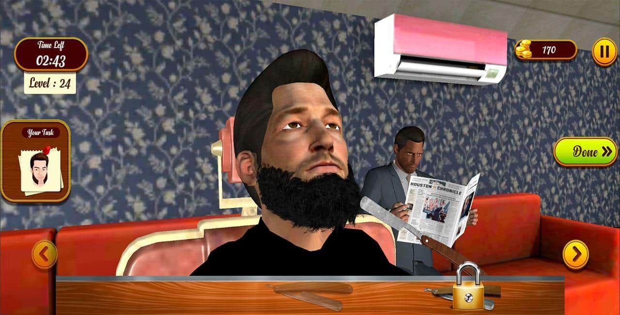 Barber Shop Simulator 3D – интересная игра на андроид, где вы будете выступать в роли парикмахера. Возьмите в руки бритву и стригите и брейте своих клиентов, которые приходят к вам сформировать свою бороду. Проходите увлекательные уровни игры и подстригайте бороды своим клиентам так чтобы они уходили от вас довольные. Превращайте беспорядок на лицах клиентов в подобие бороды и получайте огромное удовольствие от проделанной работы. С каждым новым уровнем задачи игры будут становиться все сложнее и труднее. Набирайте очки и конкурируйте с другими игроками за лучшие результаты в игре.