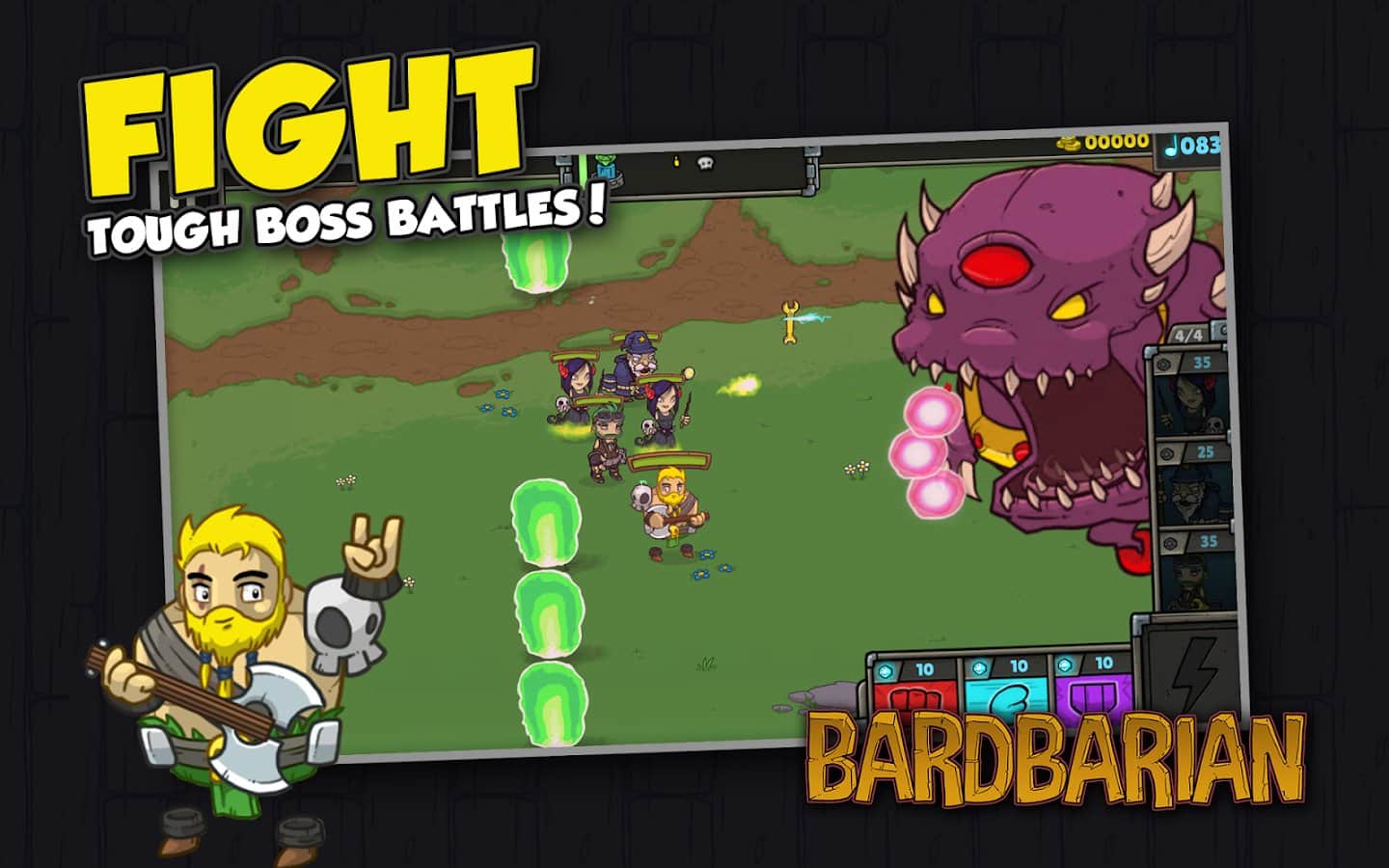 Bardbarian: Golden Axe Edition – экшен на андроид, где вы будете управлять Брэдом Варвару который должен защитить свой город от осады врагов. Используйте свой волшебный топор-лютне чтобы призвать в бой многочисленных героев и воинов. Перемещайтесь по городу и сражайтесь, нападайте и уворачивайтесь от орды врагов, при этом не давая противникам уничтожить ценный кристалл, защищающий ваш город. Сражайтесь с врагами, собирайте лут по пути и открывайте новых воинов, которые будут сражаться на вашей стороне. После смерти вашего героя вы сможете обновить его посетив магазин и наделив его уникальными способностями. Установите лучший результата в этой игре и соберите все достижения.