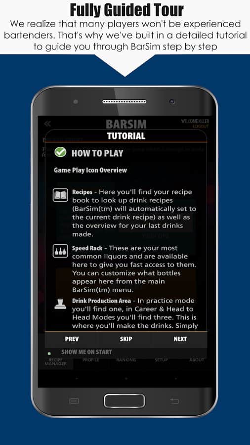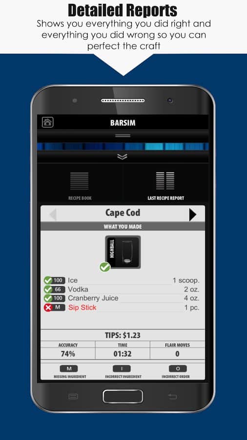 Bartender game: Bar sim – вам повезло, вы наткнулись на самый интерактивный и самый инновационный симулятор бармена. Самое интересное что навыки, которыми вы овладеете в игре пригодятся вам и в создании коктейлей в настоящей жизни – Получается что эта игра не только позволит вам отлично провести своё свободное время, но и улучшить свои навыки по созданию реальных алкогольных коктейлей. В настоящее время включены более 100 коктейлей и в будущем возможны дополнения новыми рецептами создания настоящих алкогольных шедевров. В игре несколько режимов игры включая практику.