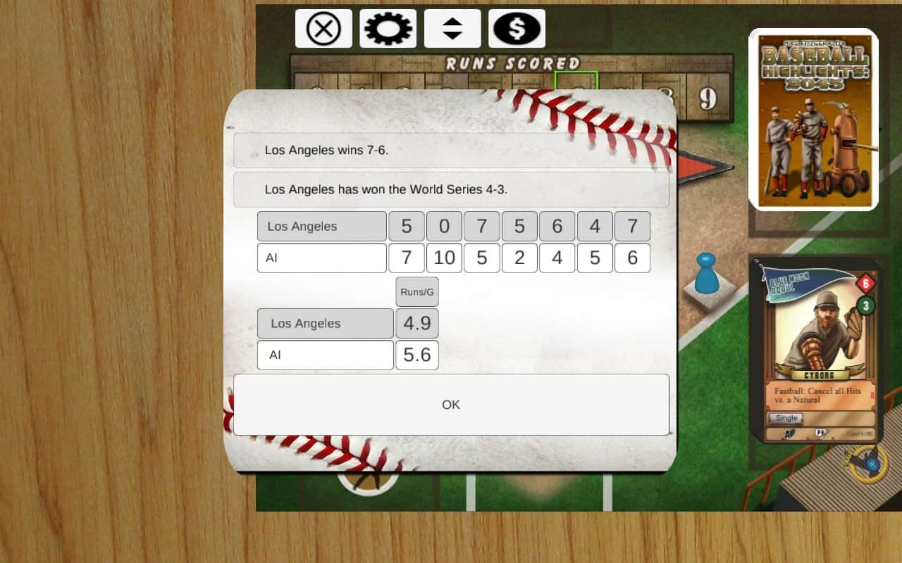 Baseball Highlights 2045 - Андроид версия популярной коллекционной карточной игры создателем которой стал Mike Fitzgerald совместно со студией Eagle-Gryphon Games. Оригинальная версия игры разошлась завидным тиражом и как следствие в последствии вышла в цифровом виде на большинстве игровых платформ в том числе и мобильных. Главным отличаем от большинства представителей жанра является то что создатели решили отойти от привычных РПГ сюжетов и обратить свое внимание на историю совсем другого направления. Сюжет Baseball Highlights 2045 развивается в будущем, во времена когда Американский футбол занял место основного спорта, но поклонники бейсбола продолжали верить что их любимый спорт вновь займет пальму первенства. Ваша задача добиться возврата бейсбола на лидирующие позиции. Геймплей же выполнен в классическом для ККИ стиле.