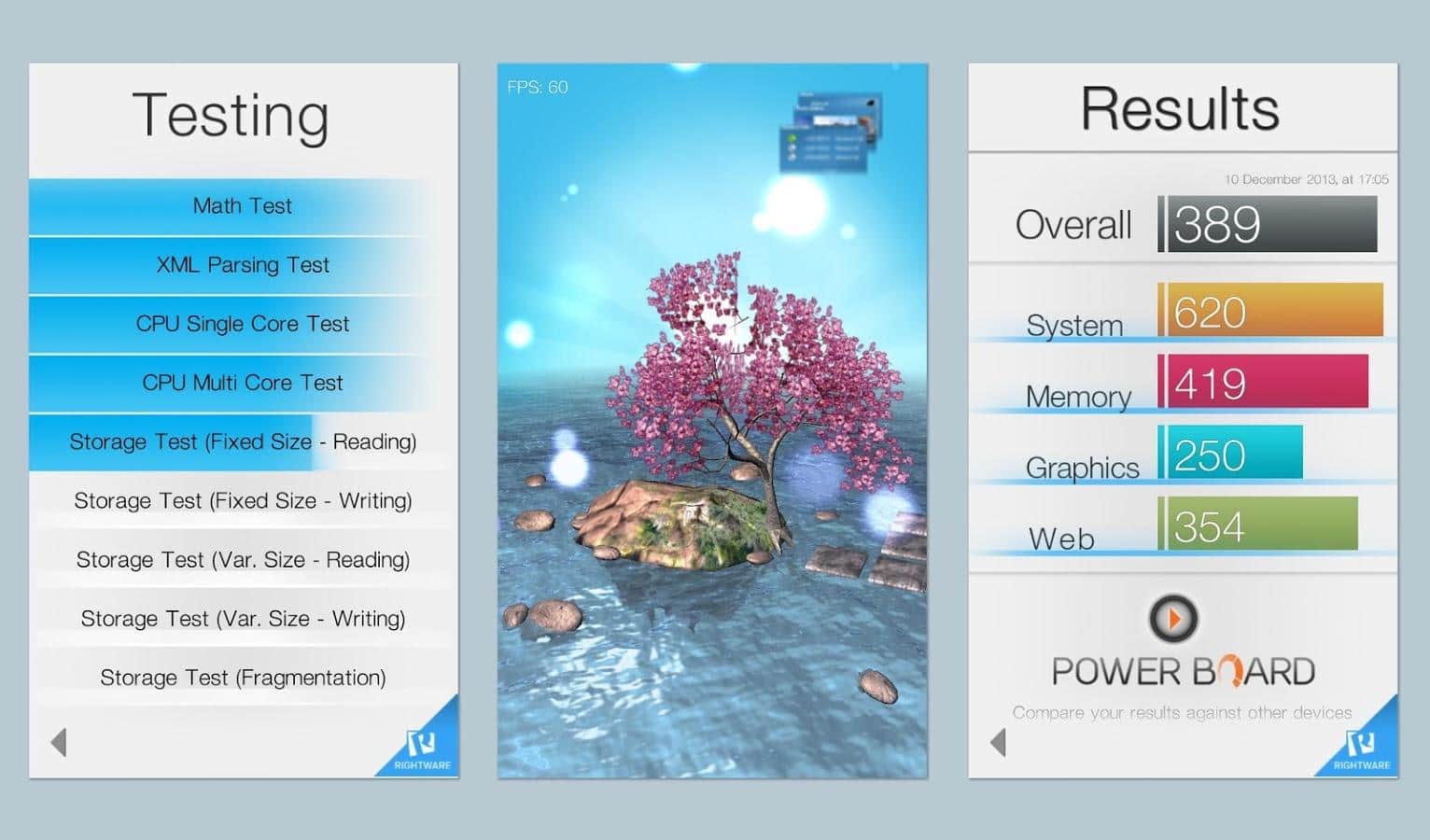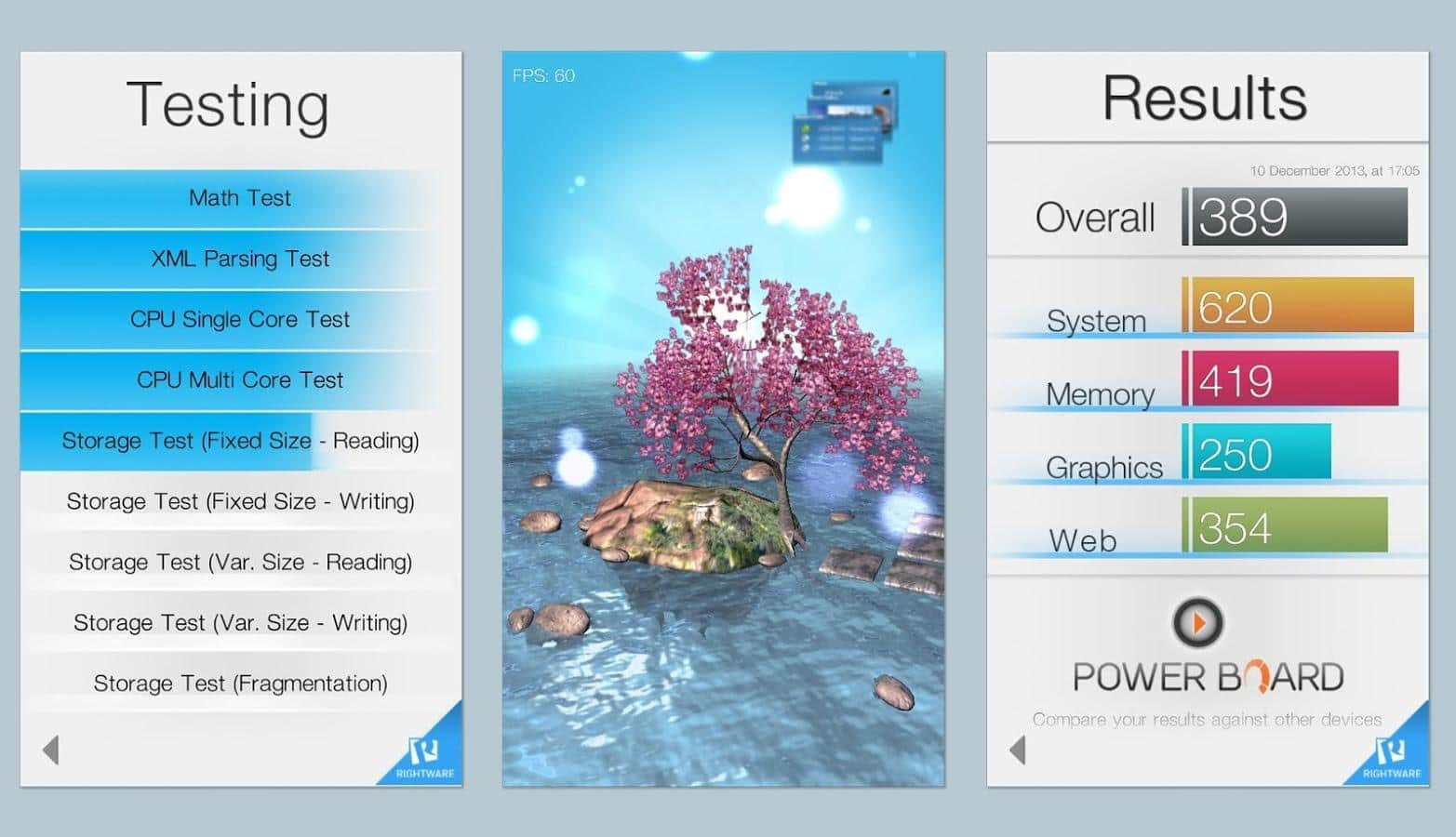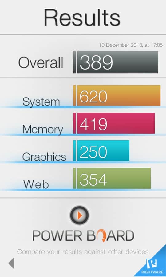 Basemark OS II - отличный бенчмарк который позволяет сравнить мощность ваших девайсов на различных операционных системах. Поддерживаются следующие ОС: iOS; Android; Windows Phone. Программа позволяет оценить мобильный процессор, GPU, общую производительность и даже скорость включения и работы.