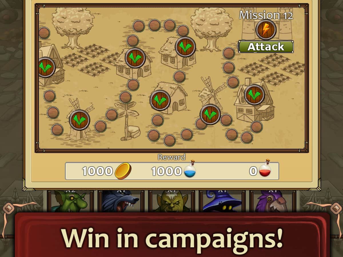 Bash Towers – стратегия на андроид, с пошаговыми сражениями и битвами. В этой игре вы станете правителем огромной башни, которую вам предстоит развивать, нанимать армию воинов, изучать различные заклинания и развивать своих боевых существ. В этой многопользовательской игре вы сможете бросить вызов реальным игрокам со всего мира и побороться с ними за право быть лучшим. Игра будет продолжаться до тех пор, пока одна из башен противников не падет. Половина успеха ваших сражений будет зависеть от добычи различных ресурсов, которые помогут вам усовершенствовать армию, получать новое оружие и развивать инфраструктуру башни. Тщательно продумывайте каждый свой шаг и побеждайте соперника.