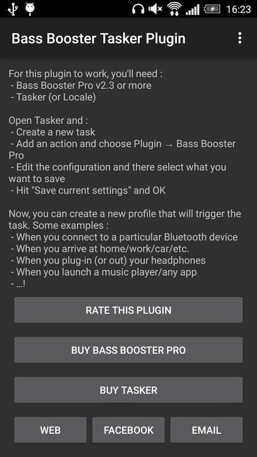 Bass Booster - Полезное приложение для всех любителей музыки для ваших андроид смартфонов. У вас есть уникальная возможность насладится качественным басом низкой частоты с множеством различных настроек и регулировок. Также в приложении есть удобный виджет и поддержка режимов для настройки телефона и гарнитуры.