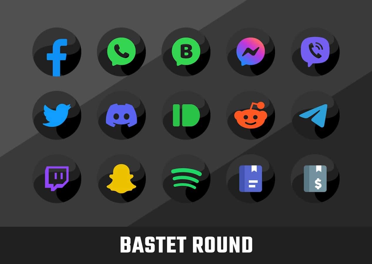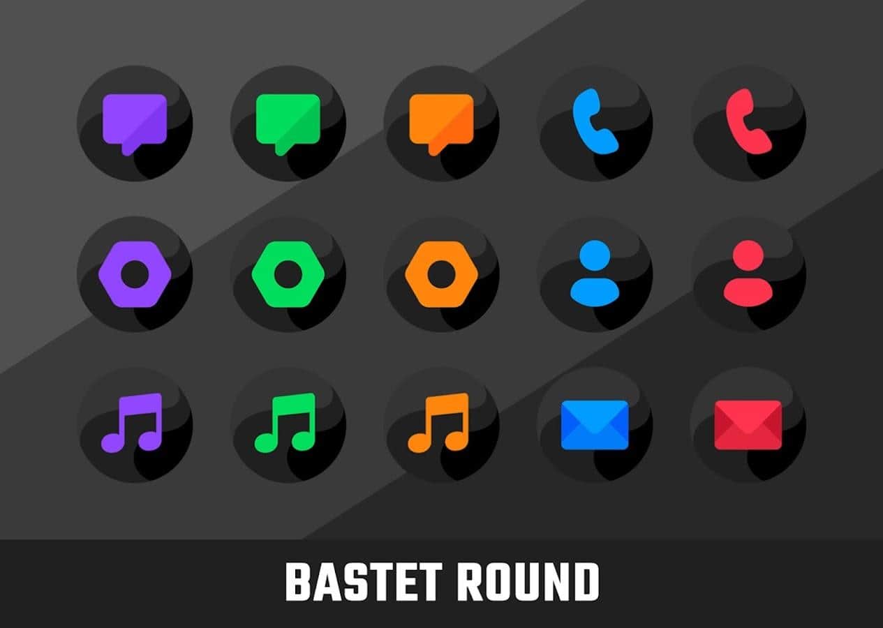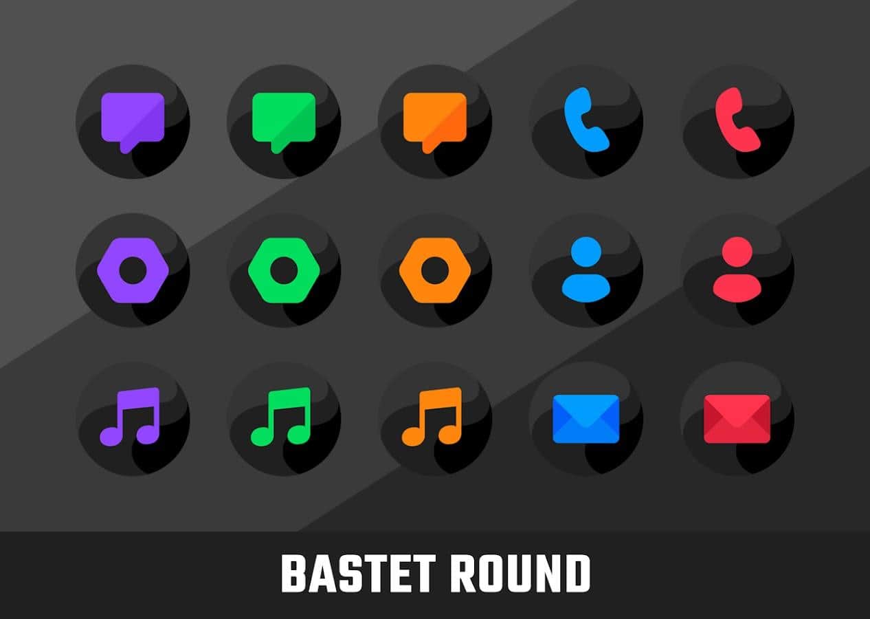 Бастет — это круглый набор иконок с оригинальным темным фоном.