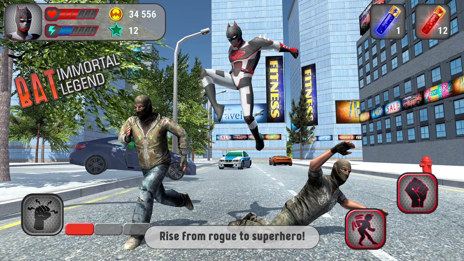 Bat: Immortal Legend – увлекательный экшен на андроид, где вы будете помогать супер герою защищать свой город от преступников. В этой игре вы сможете побывать в роли супер героя и очистить улицы родного города от бандитов. В этой игре вы сможете пройти нелегкий путь от изгоя до супер героя, который наделен особыми умениями и способностями. Впереди вас ждут разнообразные и многочисленные миссии и главной из которых будет проникнуть в военную лабораторию и узнать все тайны, которые там скрываются. Оденьте своего героя в супер костюм и применяйте с умом свои силы и сверх способности против врагов.