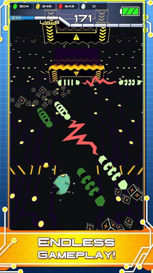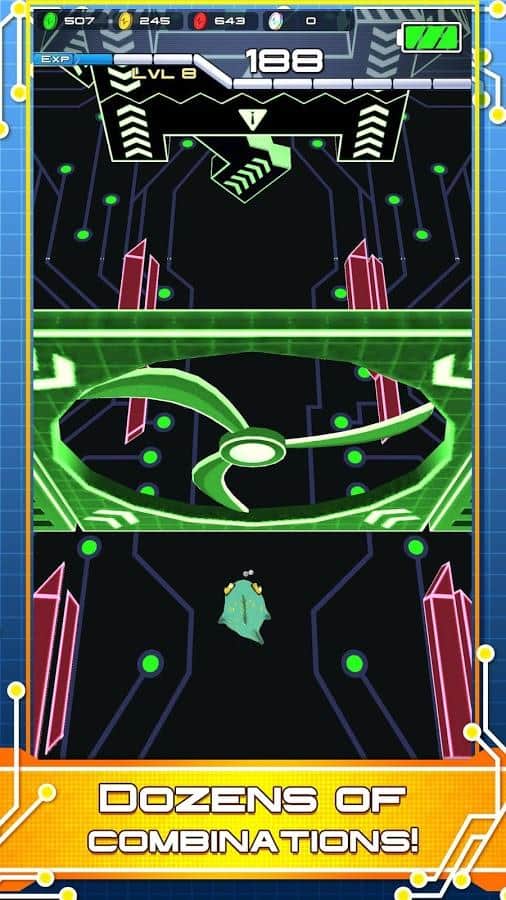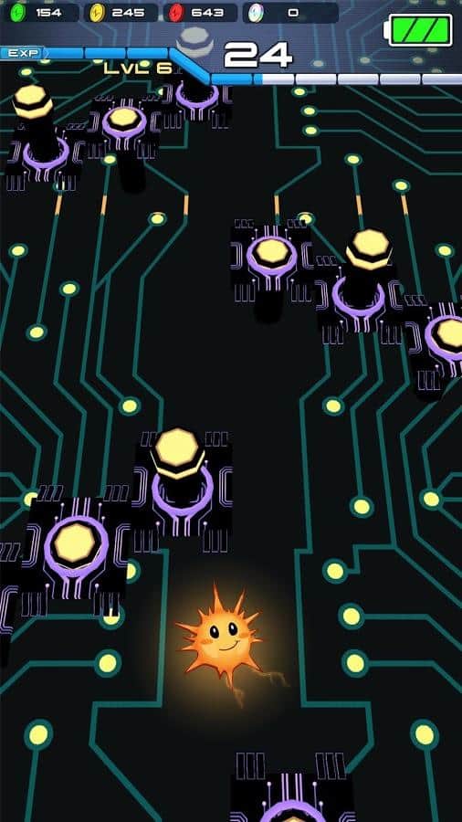 А про монетки они зависят от уровня заряда там 4 типа первый зелёные когда заряд батареи хороший , второй жёлтый заряд батареи средний , красный когда батарея почти разряжена и четвертый на подобии алмазов они встречаются редко , на собранные монетки покупаешь скины . И можно с соперниками соревноваться .