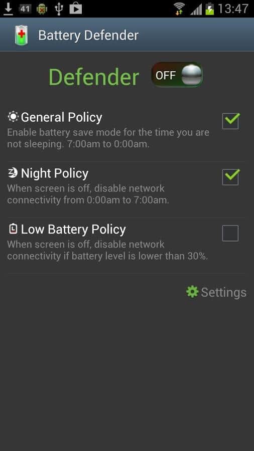 Battery Defender - Battery Saver – отличная программа для андроид смартфонов и планшетов, позволяющее увеличить работу аккумулятора! Скачайте и установите себе Battery Defender-Battery Saver и будьте уверены в том, что Ваш телефон теперь будет работать дольше прежнего!