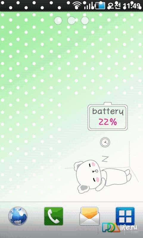 Battery Indicator Live Wallpaper – простые, но со вкусом живые обои с индикатором батареи для андроид устройств с хорошеньким мишкой. Установите эти обои и малышка-мишка будет показывать вам заряд батареи вашего устройства в процентах при этом меняя свое состояние и действие. Прекрасно подойдут для детей, ну и для взрослых, кому наскучили пестрые и навязчивые живые обои. Скачать обои можно по ссылочке ниже.