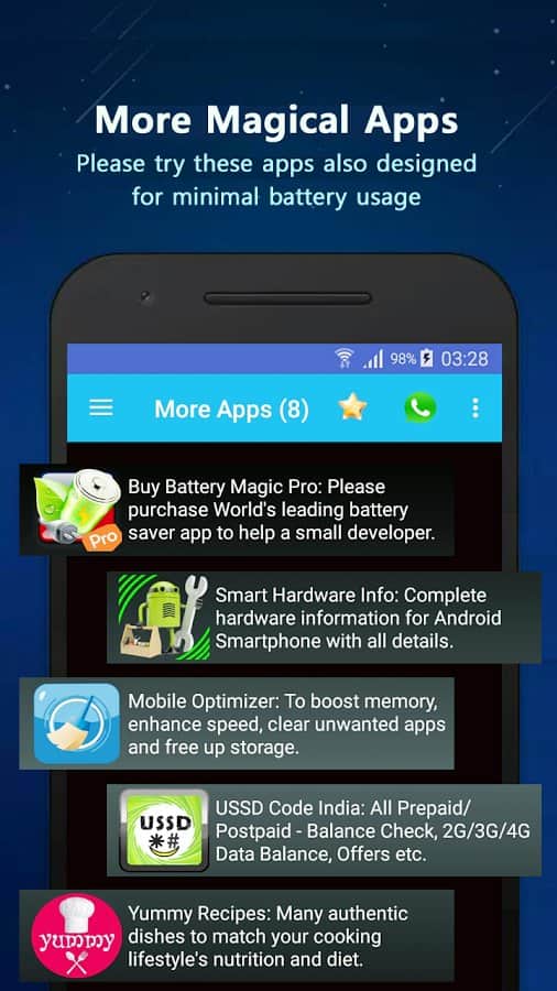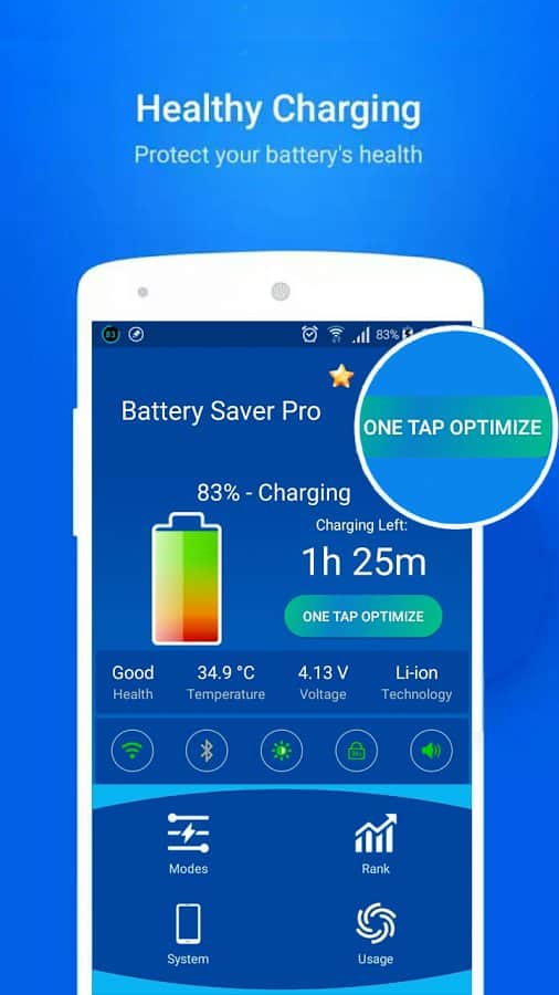 Battery Saver Pro - Мало просто сохранить заряд батареи, нужно ещё и продлить её жизнь. И сделать это можно благодаря оптимизации потребления электроэнергии. Не многие приложение могут похвастаться качественной оптимизацией и удобным интерфейсом, и за частую просто мешают работе батареи. Это же приложение на самом деле сможет оптимизировать работу и энергопотребеление питания вашей батареи, тем самым снизит нагрузку на неё и она прослужит вам дольше.