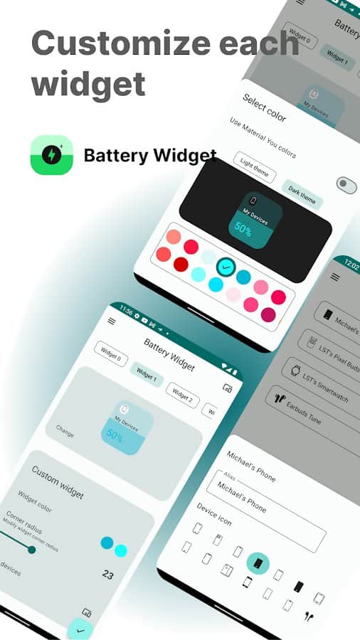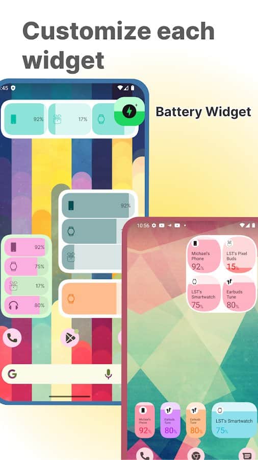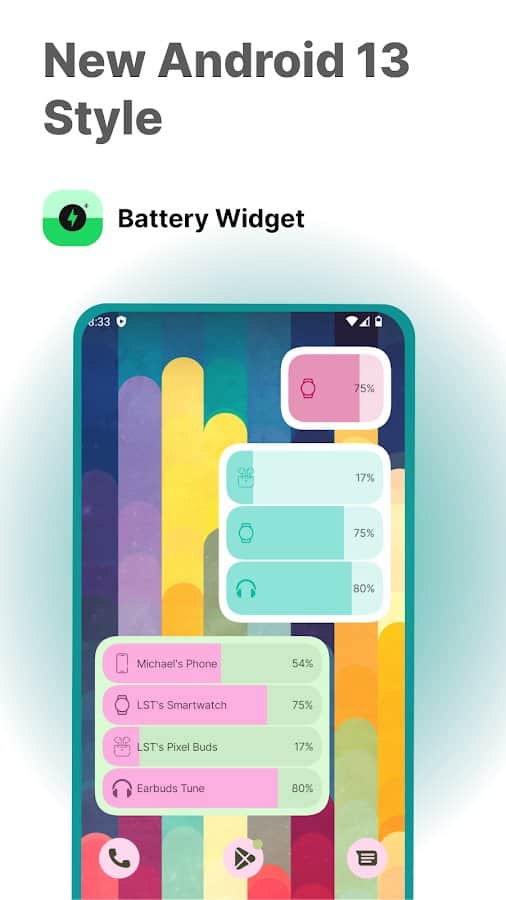 Battery Widget- Это уникальное приложение предлагает настраиваемый виджет для домашнего экрана, который показывает уровень заряда телефона, умных часов, наушников и других Bluetooth-устройств в режиме реального времени. Это отличный инструмент для того, чтобы не беспокоиться о внезапной разрядке техники, особенно если вы используете ее активно в течение дня.