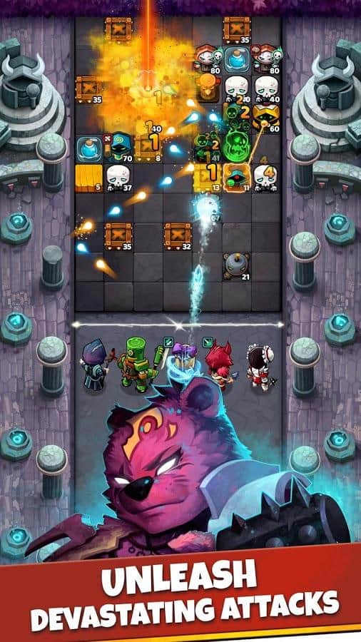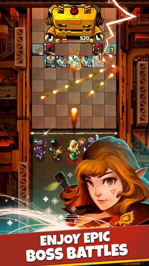 Battle Bouncers – занимательная ролевая игра на андроид, где вы будете сражаться с темными силами. В этой игре вы окажитесь в мир где темные враги захватили ваши земли и приближаются к вашему замку. Возьмите под свой контроль группу отважных героев и победите злобных монстров, угрожающих вашему королевству. Побеждайте разнообразных врагов на протяжении многочисленных уровней и используйте для этих целей мяч. Держите оборону и запускайте мяч в полет при этом учитывая его способность отскакивать от различных предметов. Путешествуйте по различным мирам и освобождайте из плена легендарных героев, которые помогут вам в победе над злом. Проложите свой путь к победе и спасите мир от зла.
