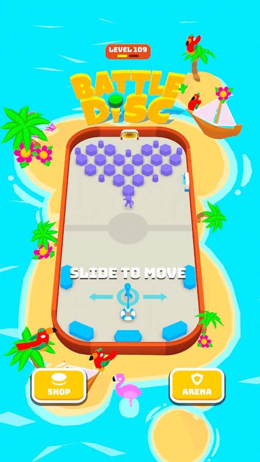 Battle Disc – отличный симулятор на андроид, который по физике напоминает аэрохоккей. В этой игре вы будете играть против соперника и стараться уничтожить все его блоки. Стреляйте диском и разбивайте блоки при этом учитывая то что диск будет отскакивать от стен и других объектов. Разрушайте оборону противника меткими выстрелами и не дайте сопернику заполучить диск. Если все-таки диск окажется у соперника он сможете также стрелять им и уже на этот раз разрушать вашу оборону. С каждым новым уровнем сложность игры будет увеличиваться, добавляя многочисленные ловушки и преграды.