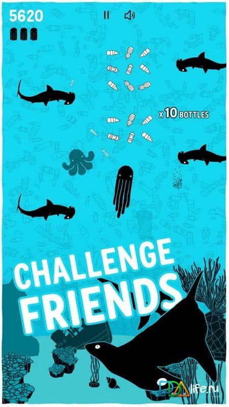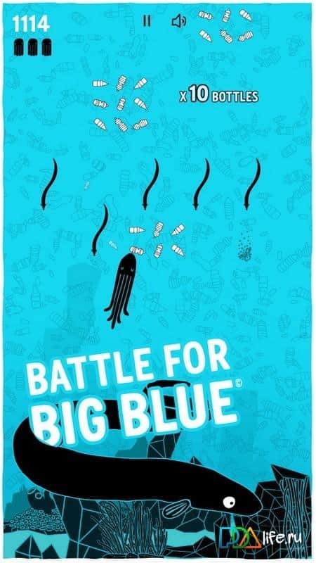 Battle for Big Blue – увлекательная игра на андроид, которая на деле показывает всем, как сильно загрязнены океаны на нашей планете. В этой игре вам предстоит управлять осьминогом, который бороздит просторы пяти океанов и собирает пластиковые бутылки. Возьмите под свой контроль осьминога и соберите как можно больше бутылок, очищая океаны от загрязнений. На вашем пути встретятся различные рыбы, столкновение с которыми вам предстоит избегать, используя для этого свою отличную реакцию. Путешествуйте по различным уровням, начиная с Атлантического океана и заканчивая Тихим. Соревнуйтесь со своими друзьями, бросая им вызов в социальных сетях Facebook.