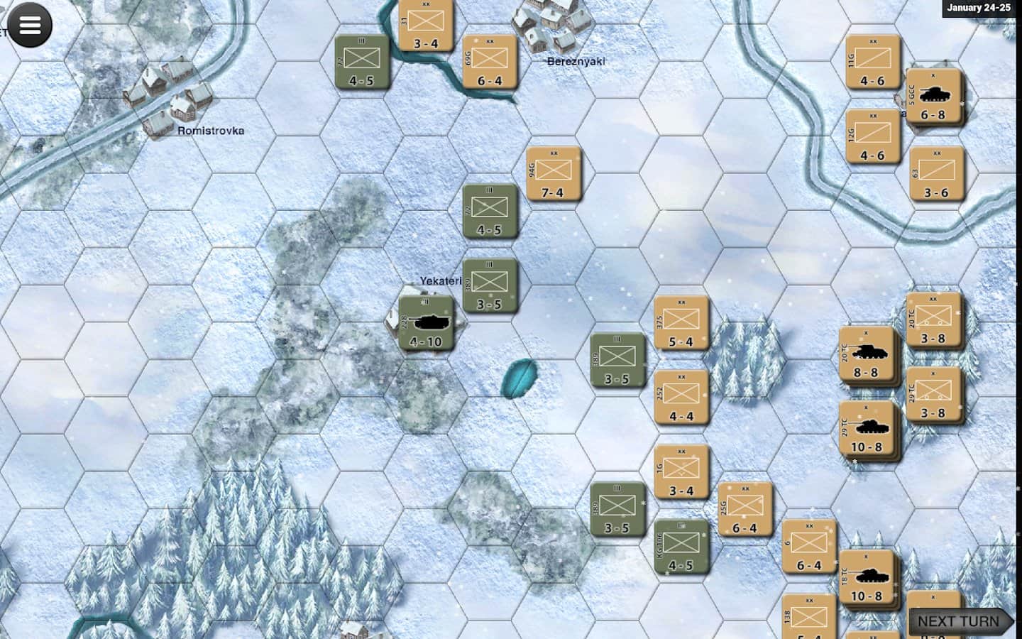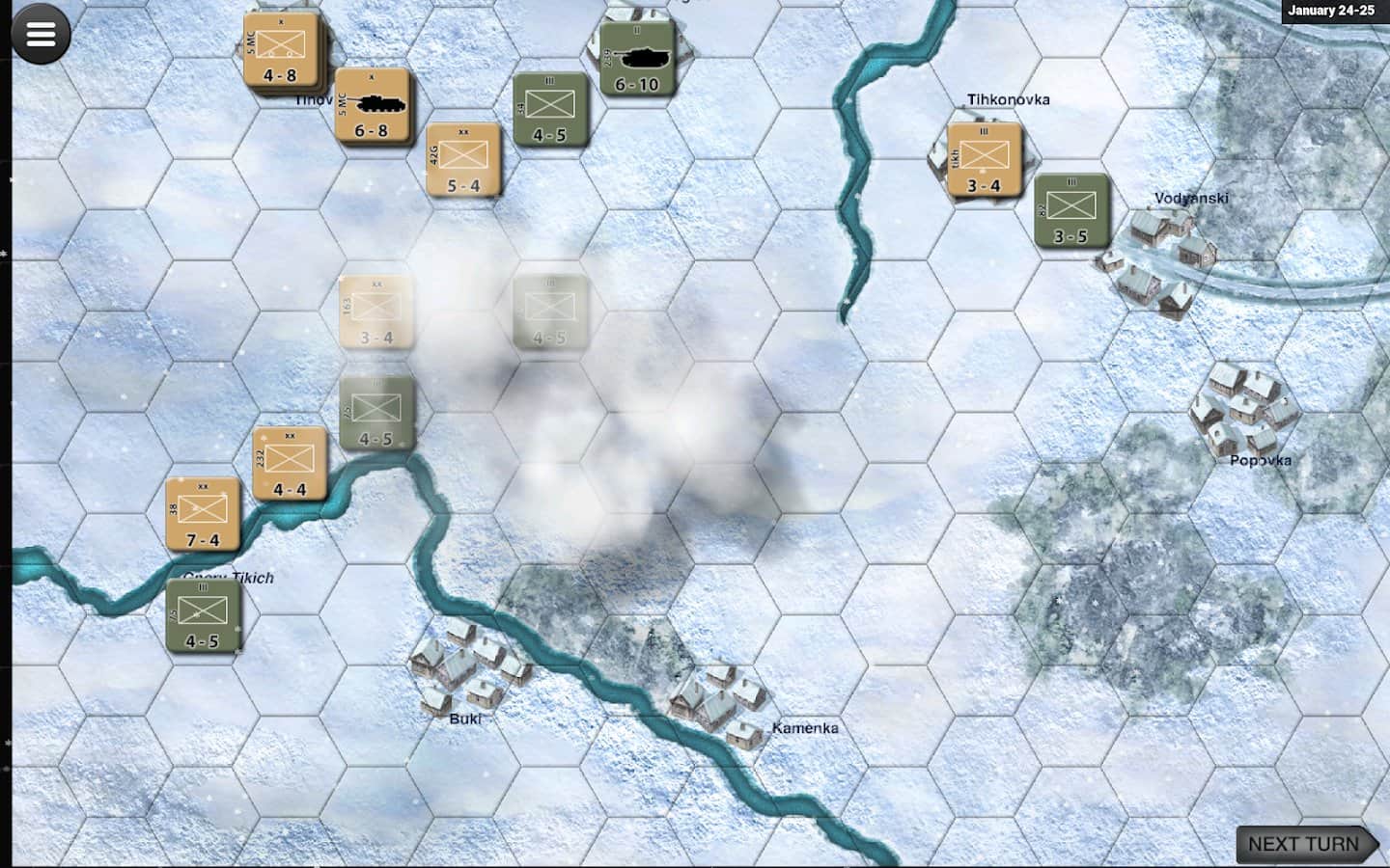 Battle for Korsun – отличная стратегия на андроид, где вы будете воссоздавать события января 1944 года. Выбирайте одну из предложенных сторон конфликта и сражайтесь на реке Днепр. Моделируйте бои происходящие в январе и феврале 1944 года и управляйте советскими или немецкими войсками. Если вы выберите советские войска, вашей задаче будет как можно быстрее окружить врагов, взяв их в кольцо, для этого управляя всеми фронтами одновременно. Старайтесь не дать врагам шанса дождаться подкрепления и уничтожить приближающиеся танки.