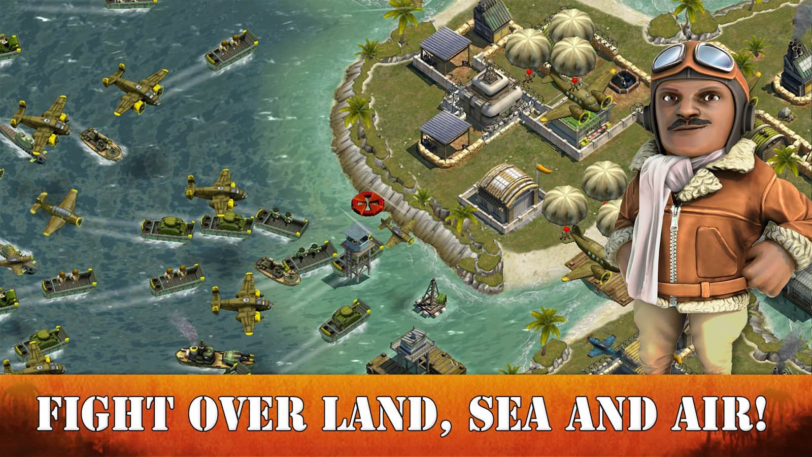 Battle Islands - онлайн стратегия на андроид, за господство в части Тихого океана в 1942 году. Ваша военная часть приземляется на тропический остров, где вам предстоит построить свою военную часть. Ведите морские и сухопутные бои, с врагом используя различную технику: джипы, танки, лодки и боевые самолеты, а также стройте свои гарнизоны и сражайтесь со своими друзьями за господство. Вас ждет большое количество часов захватывающего геймплея в этой стратегии в реальном времени.