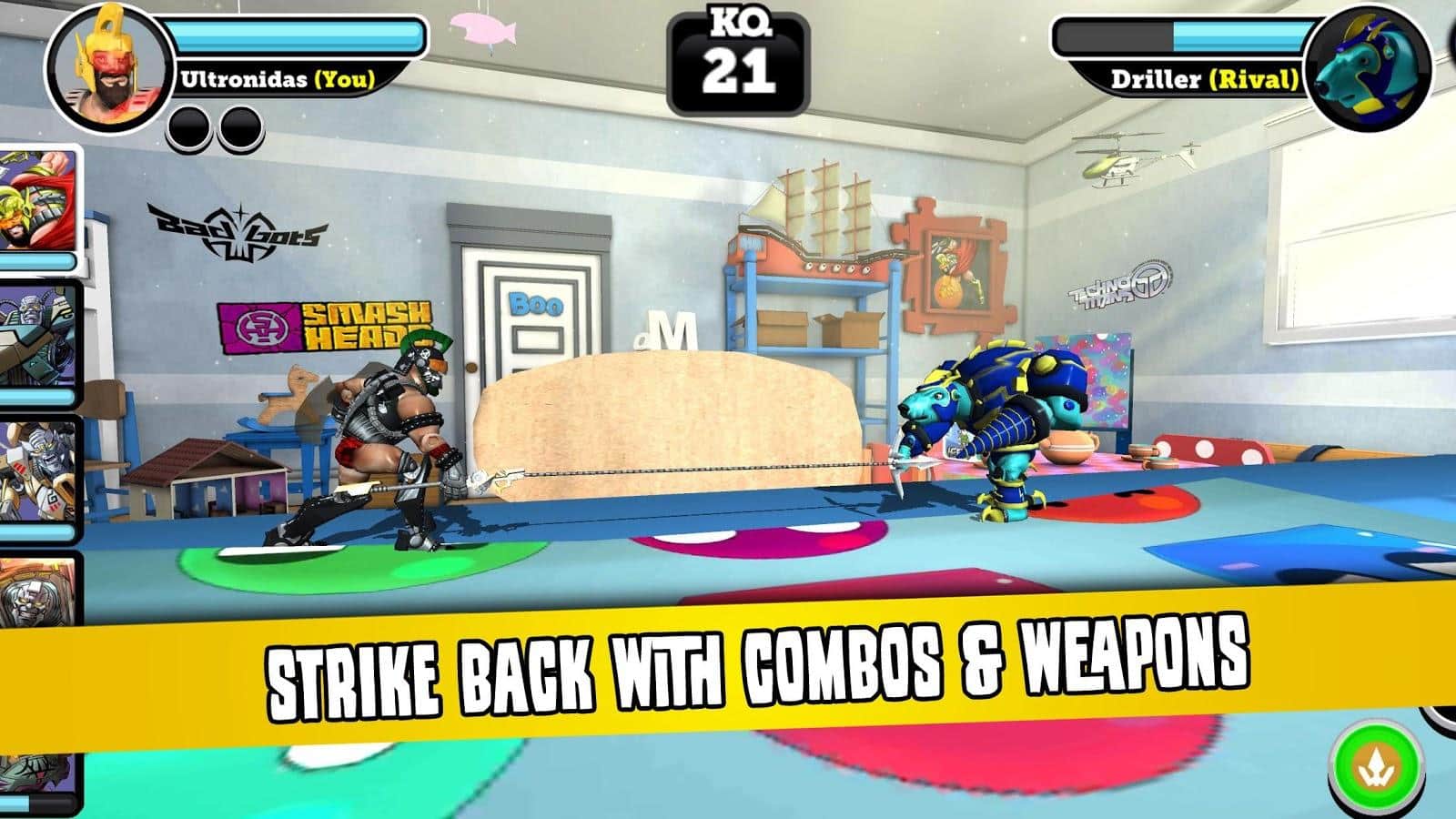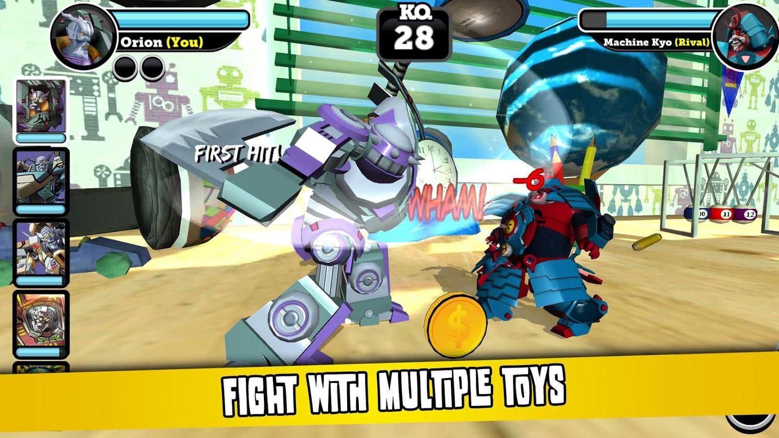 Battle of Toys - довольно многообещающий, хотя на сегодняшний день, не менее спорный проект. В чем же его неоднозначность, спросите вы. Да собственно подобное мы видели и не раз. Молодая студия разработчик выпустив ряд проходных проектов решает сделать нечто достойное, и выпускает в свет недоработанную Beta версию с кучей багов. И Battle of Toys яркий тому пример, но стоит отдать создателям должное, несмотря на недоработки проект и прям хорош. Battle of Toys - динамичный файтинг с красочной графикой и яркой анимацией, простым управлением, широкими возможностями для апгрейдов, развития и кастомизации. Но отдельно стоит отметить выбор персонажей, а это различные игрушки солдатики, рыцари, мультяшные монстры, трансформеры и прочие представители жанра. Что же будем надеяться на то что разработчики исправят баги и игра будет работать на всех устройствах, а не только на избранных как сейчас.