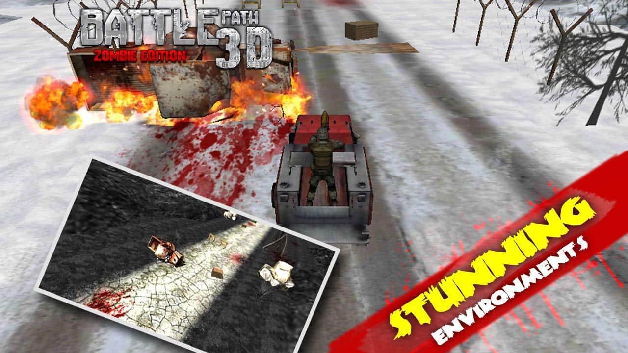 BATTLE PATH 3D- ZOMBIE EDITION - игра в которой вы вступите в экшен битву против зомби. Вы главнокомандующий армии и вашей задачей провести свой отряд на холм где расположена ваша стратегическая база. Но на вашем пути встали орды зомби, которые преграждают дорогу и вам предстоит их отстреливать с помощью мощного оружия. Вас ждут отличные карты HD и реалистичные звуковые эффекты, а также мощные грузовики и возможность их модернизации.