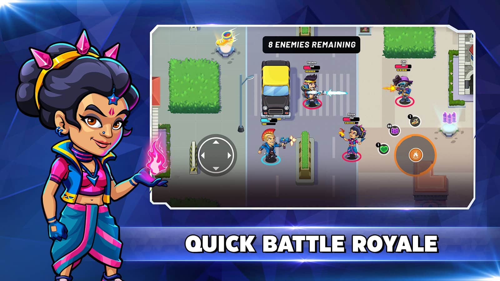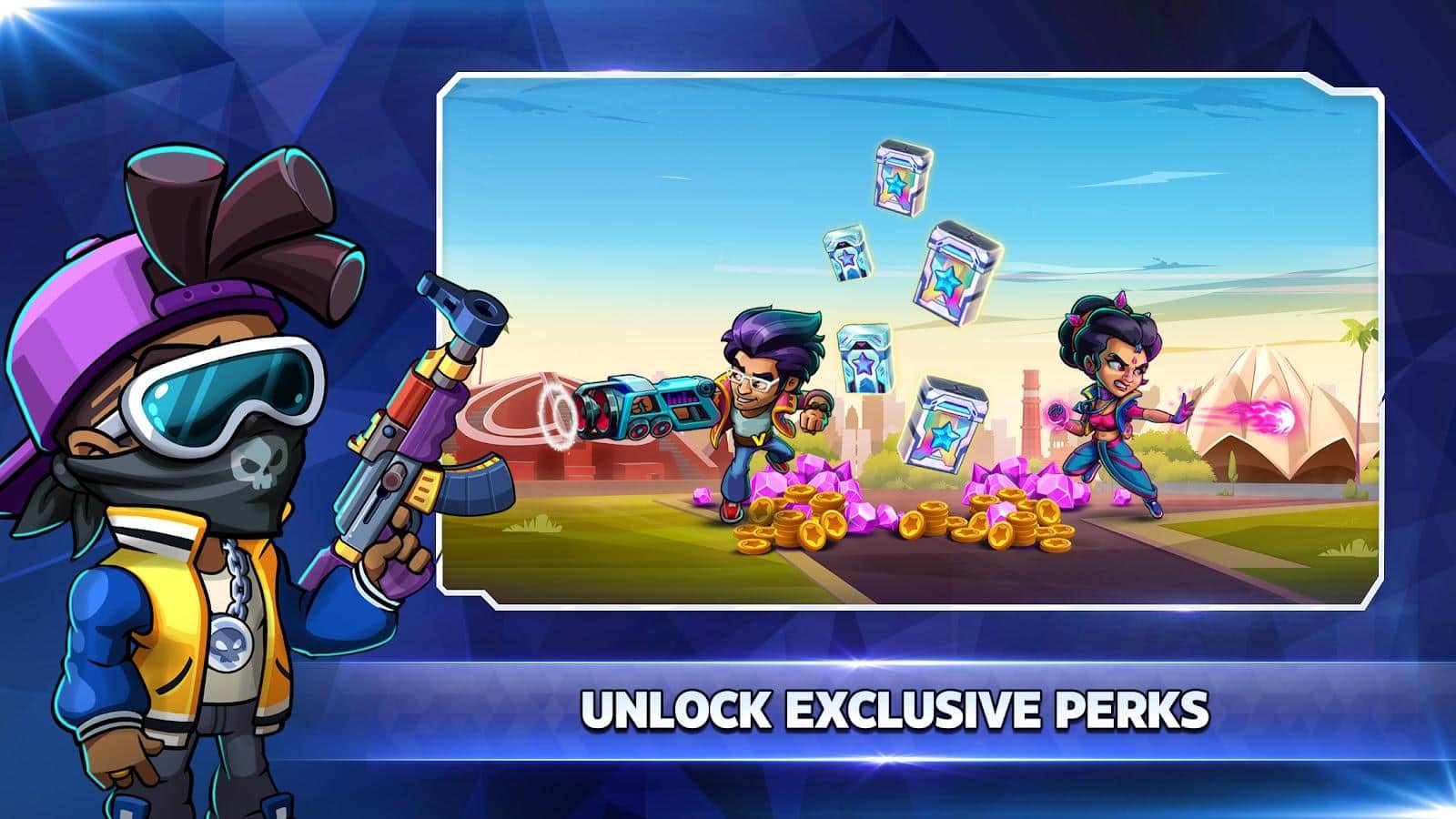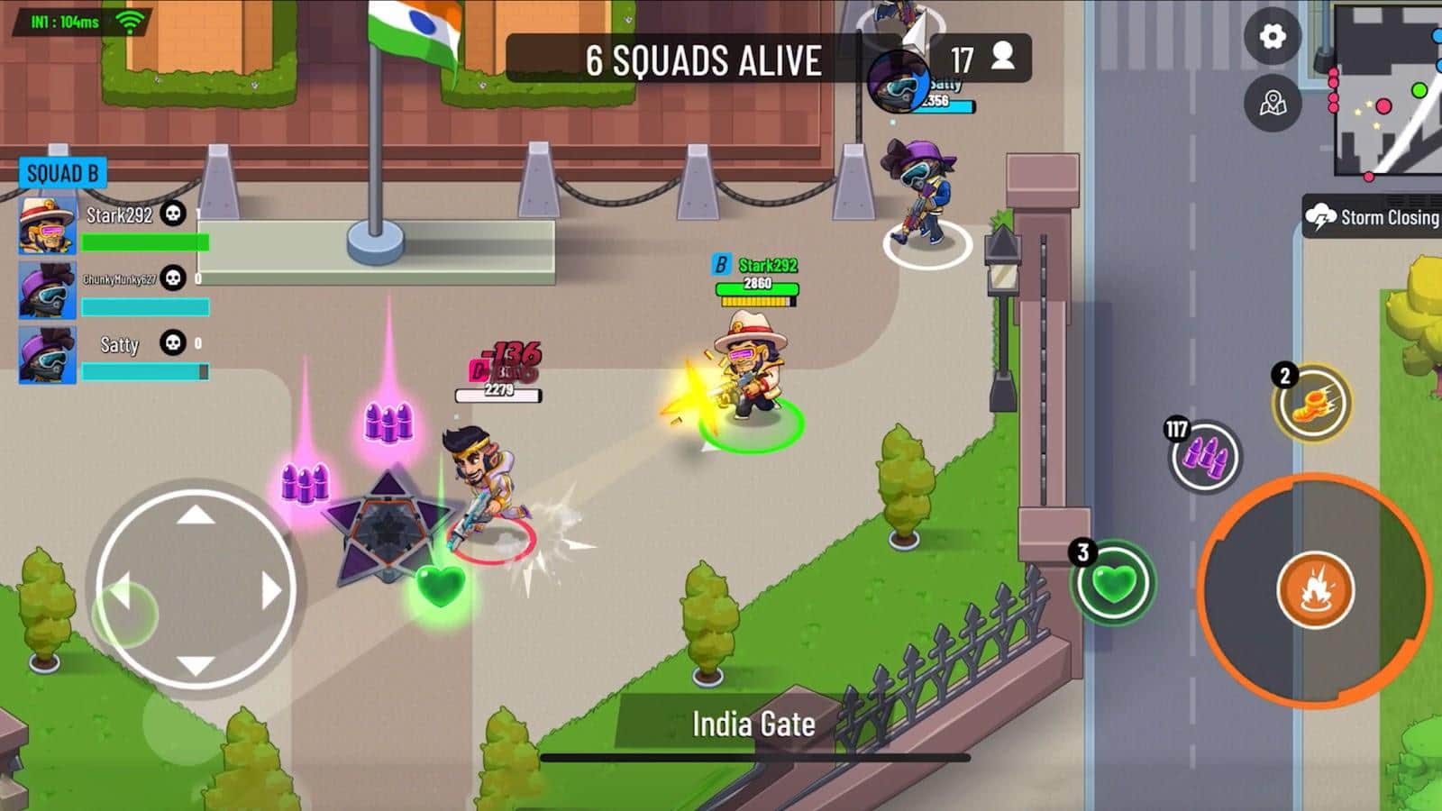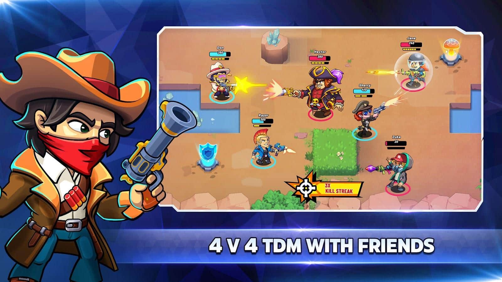 В Battle Stars, вас ждут невероятные приключения в эпических сражениях с использованием разнообразного вооружения. Погрузитесь в атмосферу динамической стрельбы и захватывающих многопользовательских онлайн-игр 3на 3 и 4 на 4. Сразитесь с 10 другими отрядами в режиме реального времени и докажите свое мастерство стрельбы. Станьте последним выжившим и покажите, что ваш отряд непобедим! Классическая Королевская Битва!