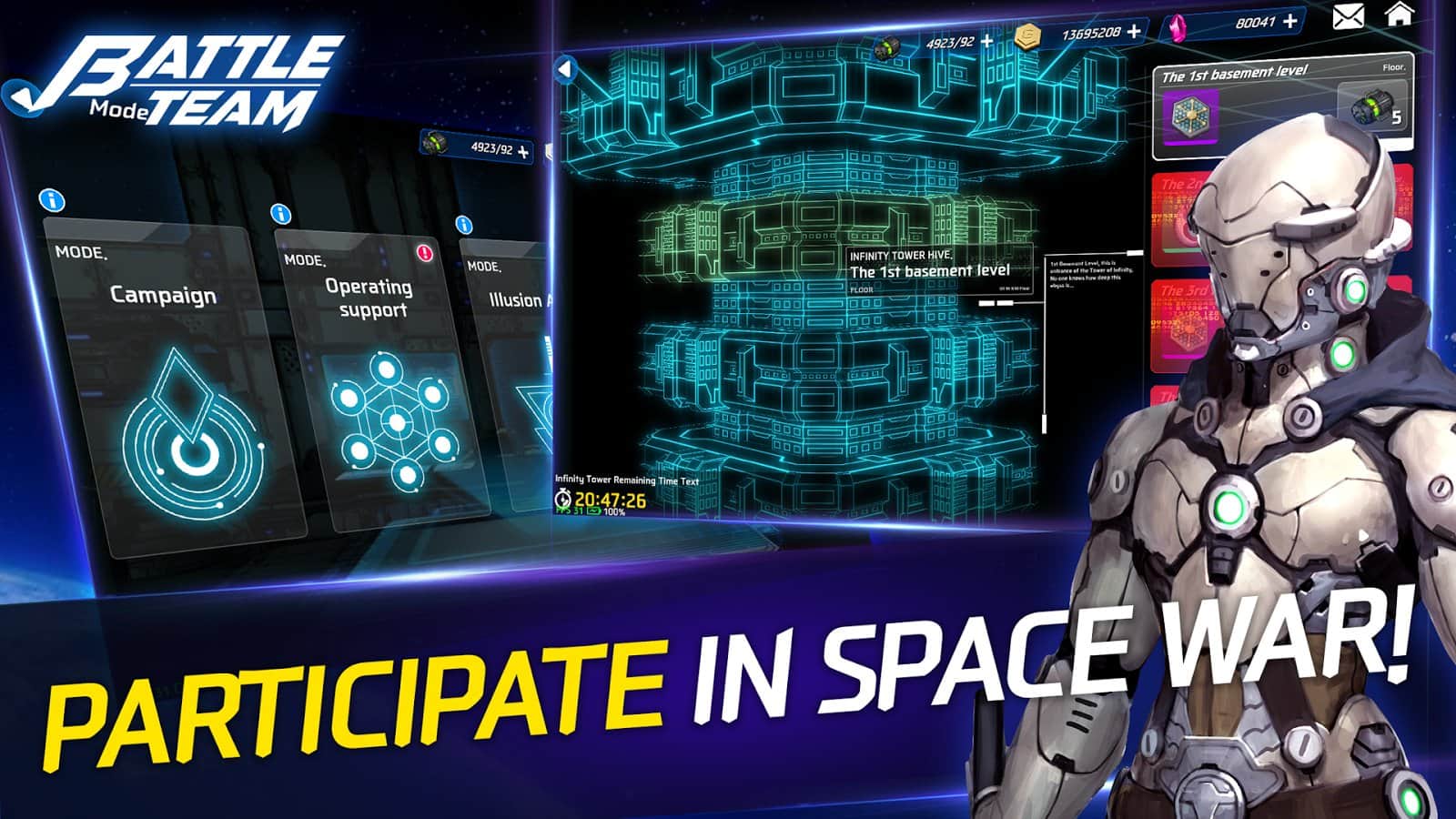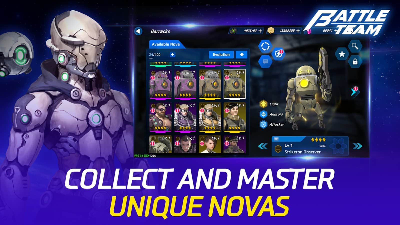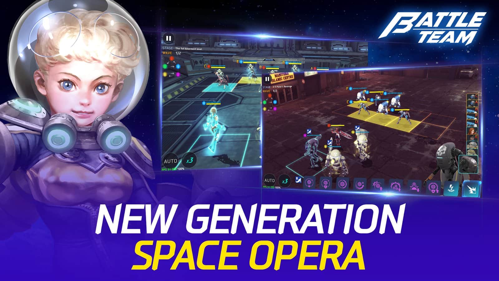 Battle Team – RPG на андроид, где вы примите участие в космических баталиях на разных планетах. Соберите свою непобедимую команду героев, где каждый из персонажей будет обладать уникальными навыками и умениями. Выполняйте многочисленные и разнообразные миссии на разных планетах огромной галактики и побеждайте сильных врагов. Разрабатывайте непобедимую стратегию и учитывайте при этом сильные и слабые стороны своего противника. Вступайте в схватку с сильными боссами и покажите все, на что способна ваша команда. В игре представлено более 300 героев, несколько режимов игры и бои с другими игроками.