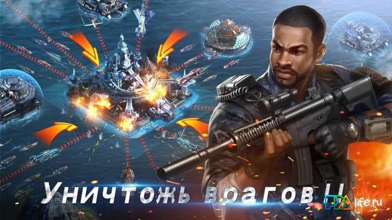 Battle Warships – стратегия на андроид, которая перенесет вас в далекое будущее, где водой покрыта большая часть земного шара. В этой игре вы станете капитаном огромного флота и будете сражаться с врагами, защищая свой порт. Постройте свою непобедимую морскую империю и обороняйте ее от нападок врагов. По ходу игры занимайтесь строительством и улучшением своей базы, стройте новые корабли, линкоры, авианосцы и эсминцы. Разрабатывайте свою стратегию ведения боя и участвуйте в грандиозных морских сражениях, объединяйте свои силы с друзьями и наносите смертельные удары по вражеским силам. Особенностями игры являются, более 20 различных классов кораблей, более 20 видов авиации и возможность сражаться с реальными игроками.
